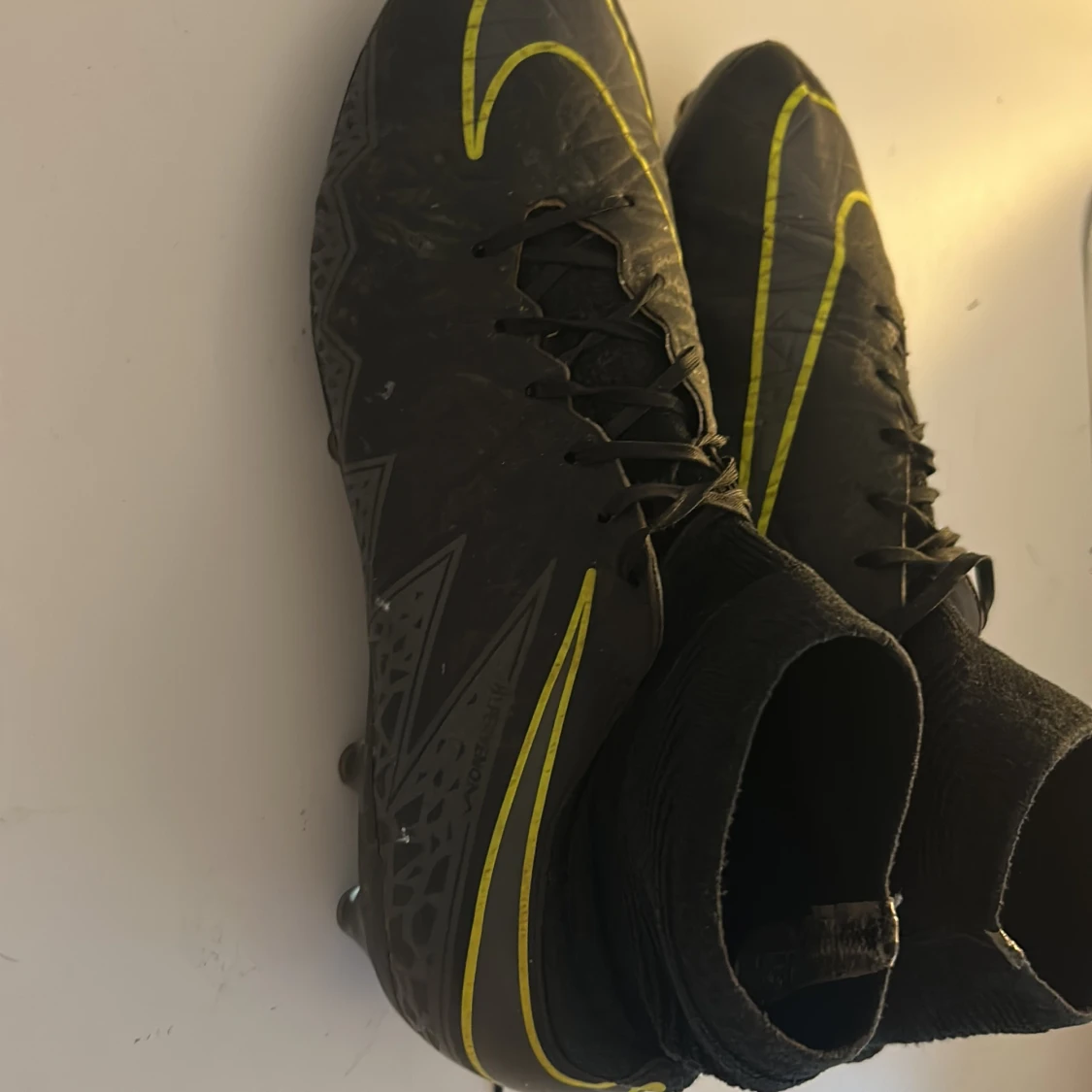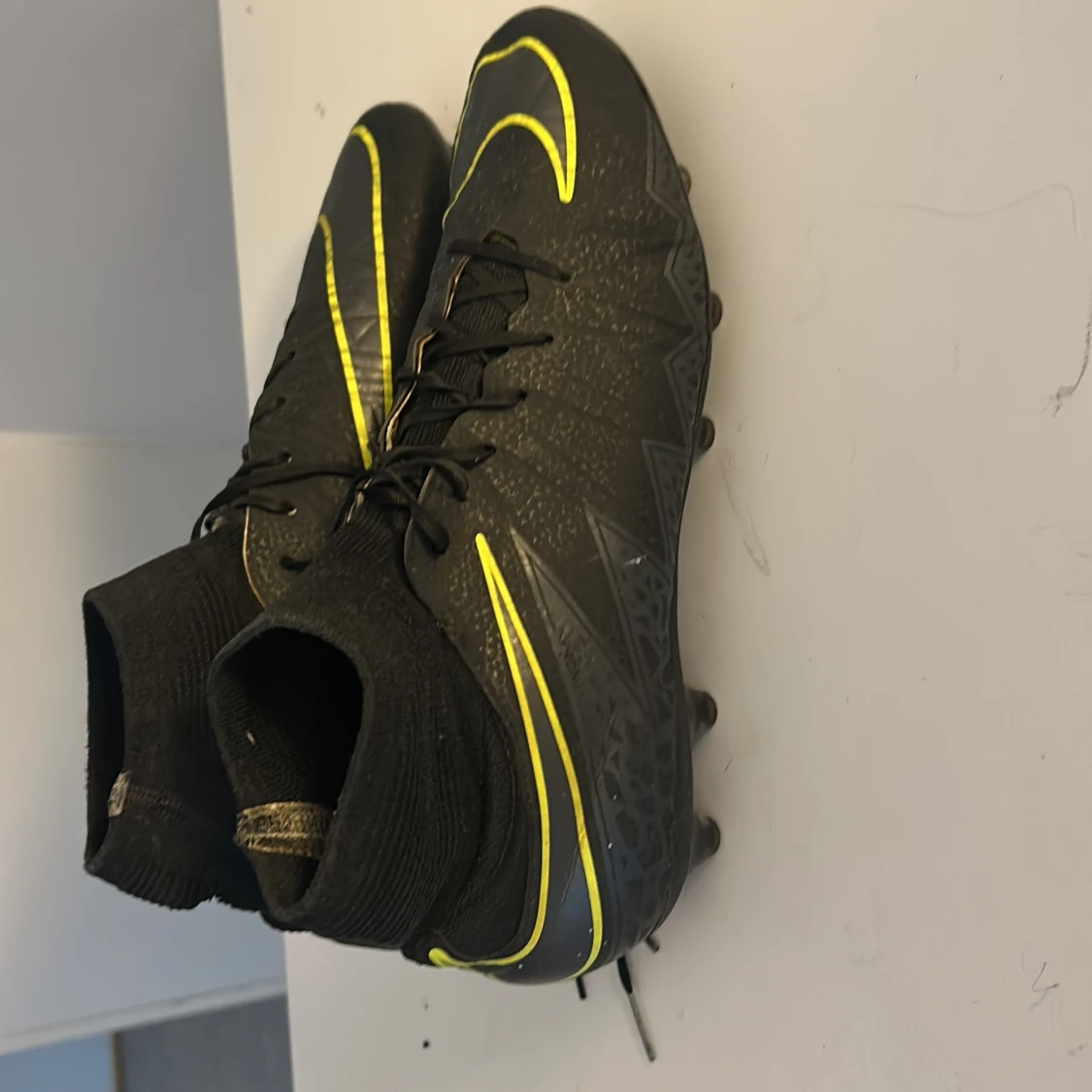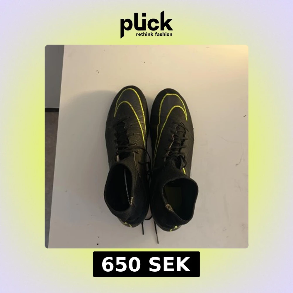Säljer ett par svarta Nike Mercurial fotbollsskor med gula detaljer i storlek 43.