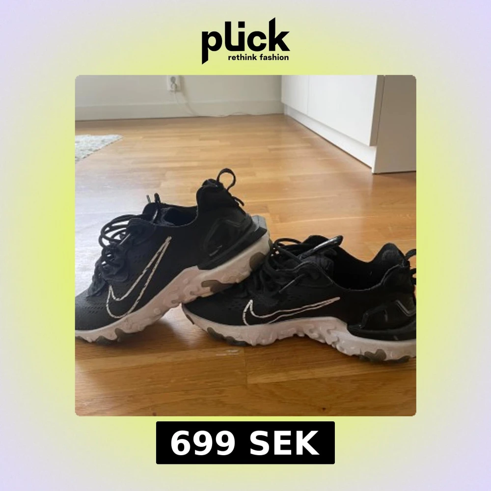 Säljer ett par svarta Nike React sneakers med vit sula och vit swoosh. Använde kanske 10 gånger och har inga skador eller synliga täcken på användning.