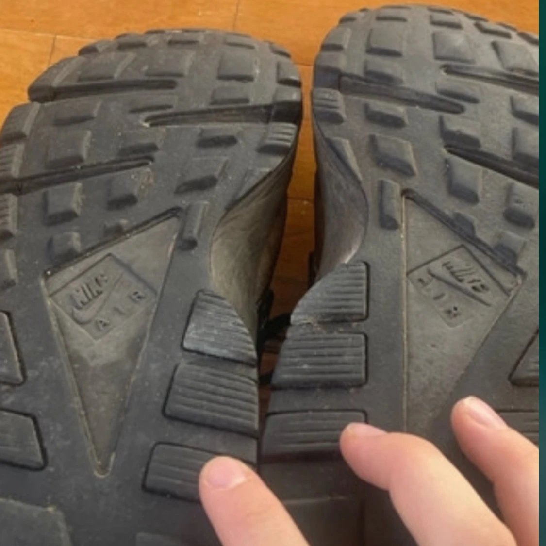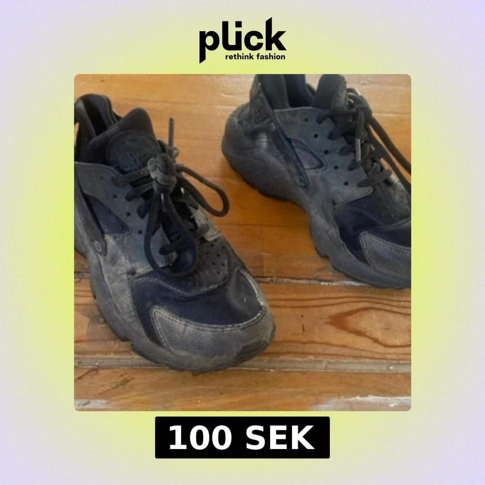 Säljer ett par svarta Nike sneakers med robust sula och snörning. Skorna har en sportig design med paneler i olika material och rund tå. Perfekta för dig som gillar streetwear och vill ha en klassisk look.