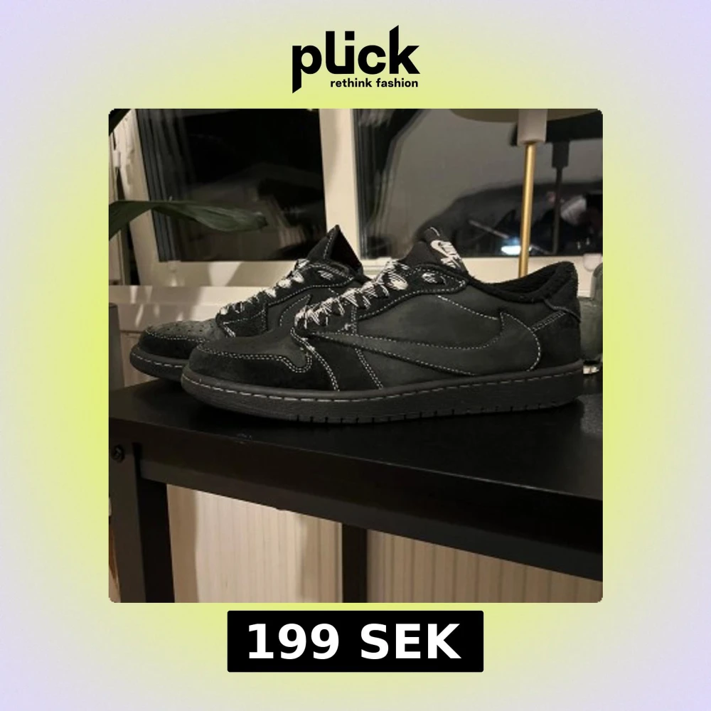 Säljer ett par black phantom Travis scott X Nike X Jordan. Box tillkommer ej, inga extra skosnörren och sulan på vänster sko saknas. Övrigt är dem acceptabelt skick (Inte @kta)