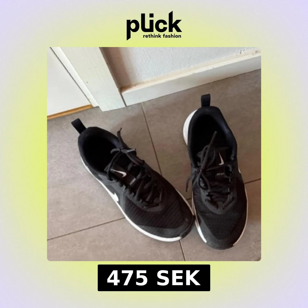 Svarta Nike sneakers med vit sula och klassisk swoosh på sidan. Skorna har snörning och är tillverkade i mesh och syntetmaterial för bra ventilation. Rund tå och platt sula gör dem perfekta för en aktiv livsstil. Snygg och sportig design som passar till det mesta.