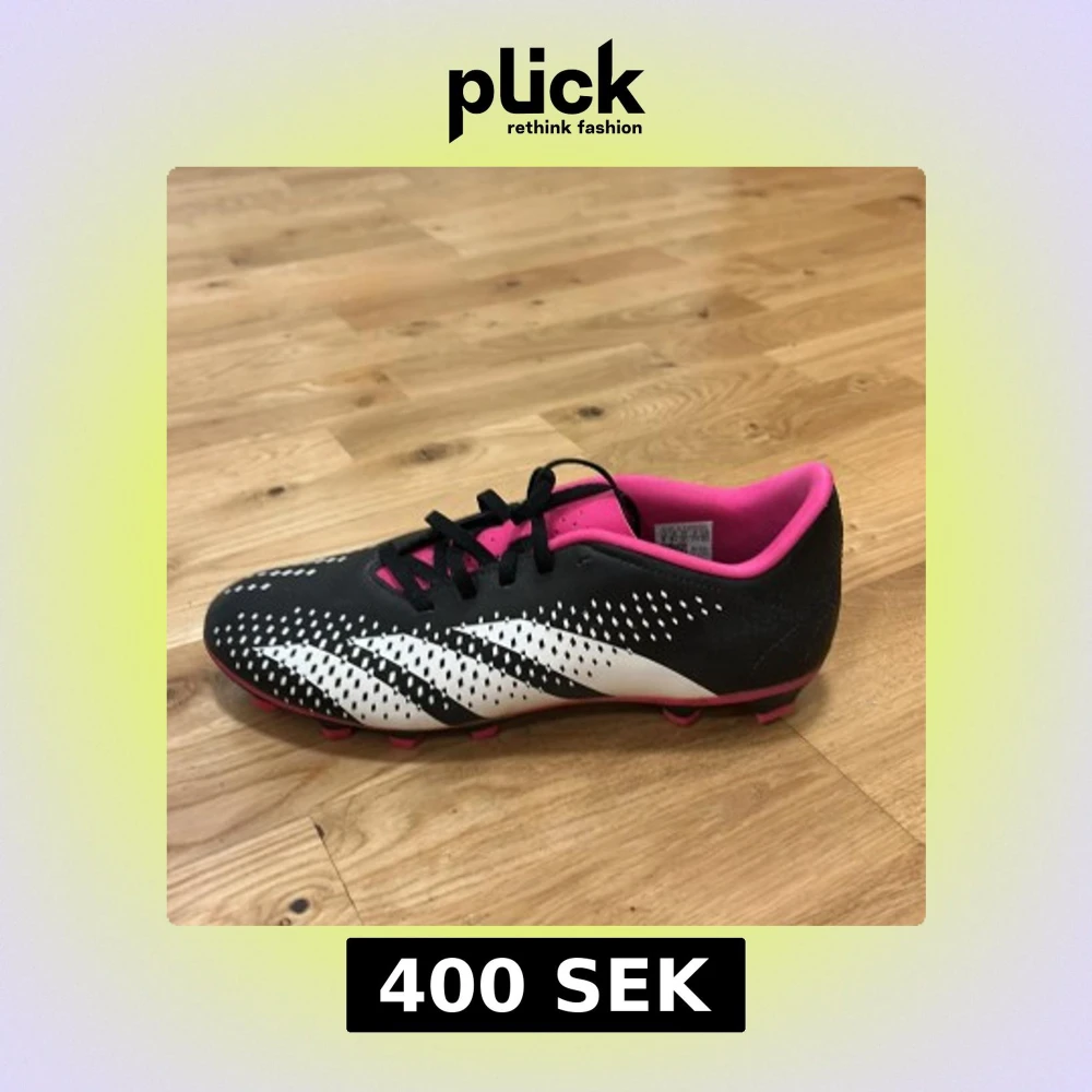Snygga fotbollsskor från Adidas i svart med vita och rosa detaljer. Skorna har snörning och en modern design med mönster över ovandelen. Perfekta för fotbollsplanen med sin greppvänliga sula.