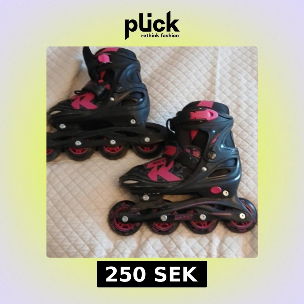Snygga inlines från Roces i svart och rosa med stora R-loggor och blommiga detaljer. Skorna har snörning, kardborreband och spänne för extra bra passform. Hård ytterskal i syntet och robusta hjul med rosa detaljer. Perfekta för dig som gillar fart och stil. Är använda och är lite slitna på utsidan men funkat perfekt. Storleken är från 34 till 37 då alla som har dessa storlekar kan ha dom.(visas på en av bilderna)