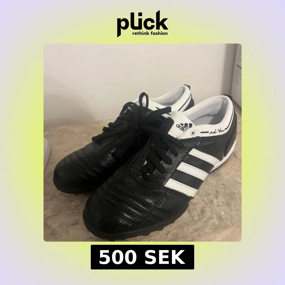Klassiska Adidas adiNova fotbollsskor i svart och vitt med de ikoniska tre ränderna på sidan. Skorna har snörning och är tillverkade i skinn för bästa känsla på planen. Perfekta för dig som vill ha stilrena och bekväma skor till fotbollsträningen.