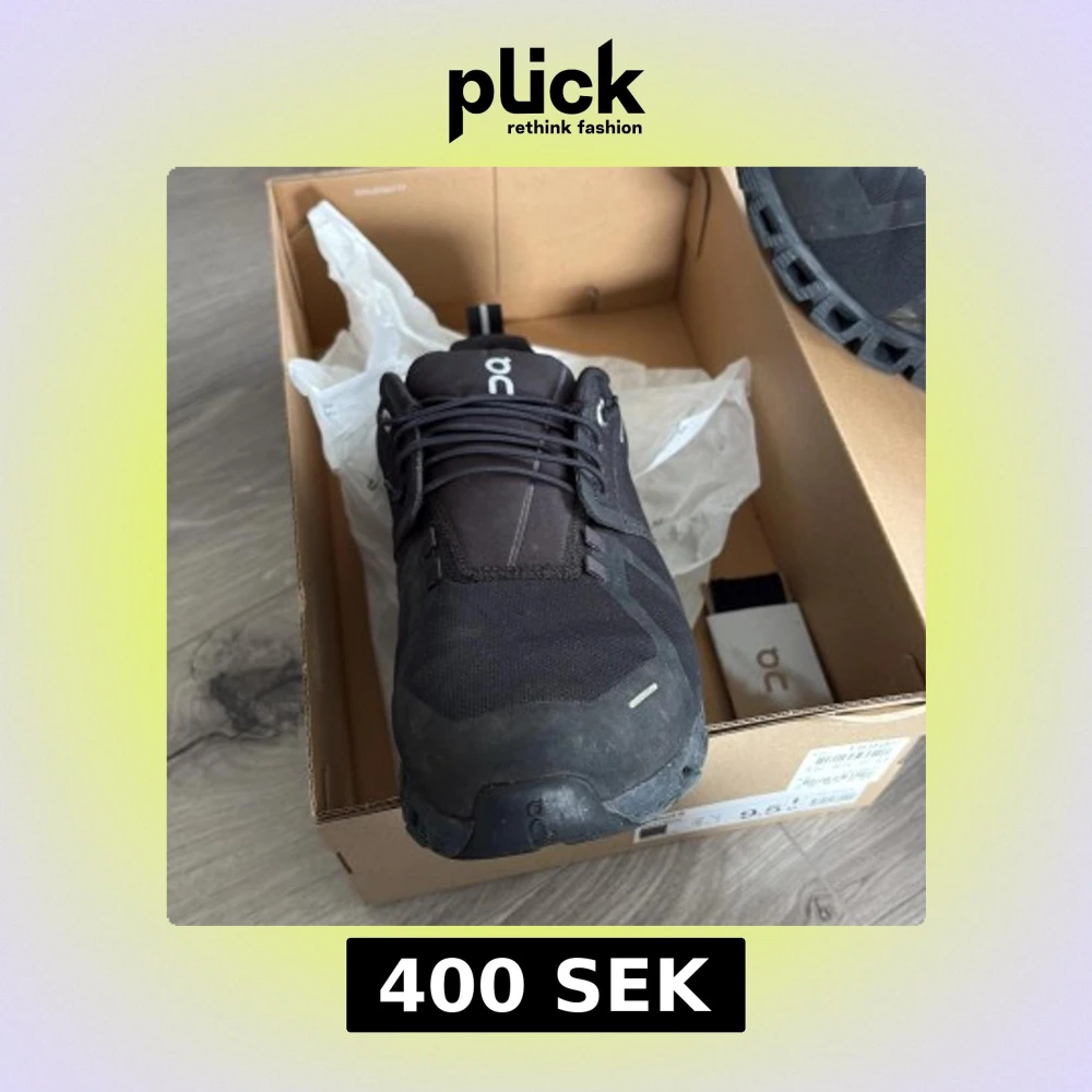 Säljer ett par svarta On Running sneakers i storlek 42.5. Skorna har en sportig design med tydlig logga, snörning och robust sula med unika hål för extra grepp. Tillverkade i syntetmaterial och textil, perfekta för dig som gillar stilrena och funktionella skor.
