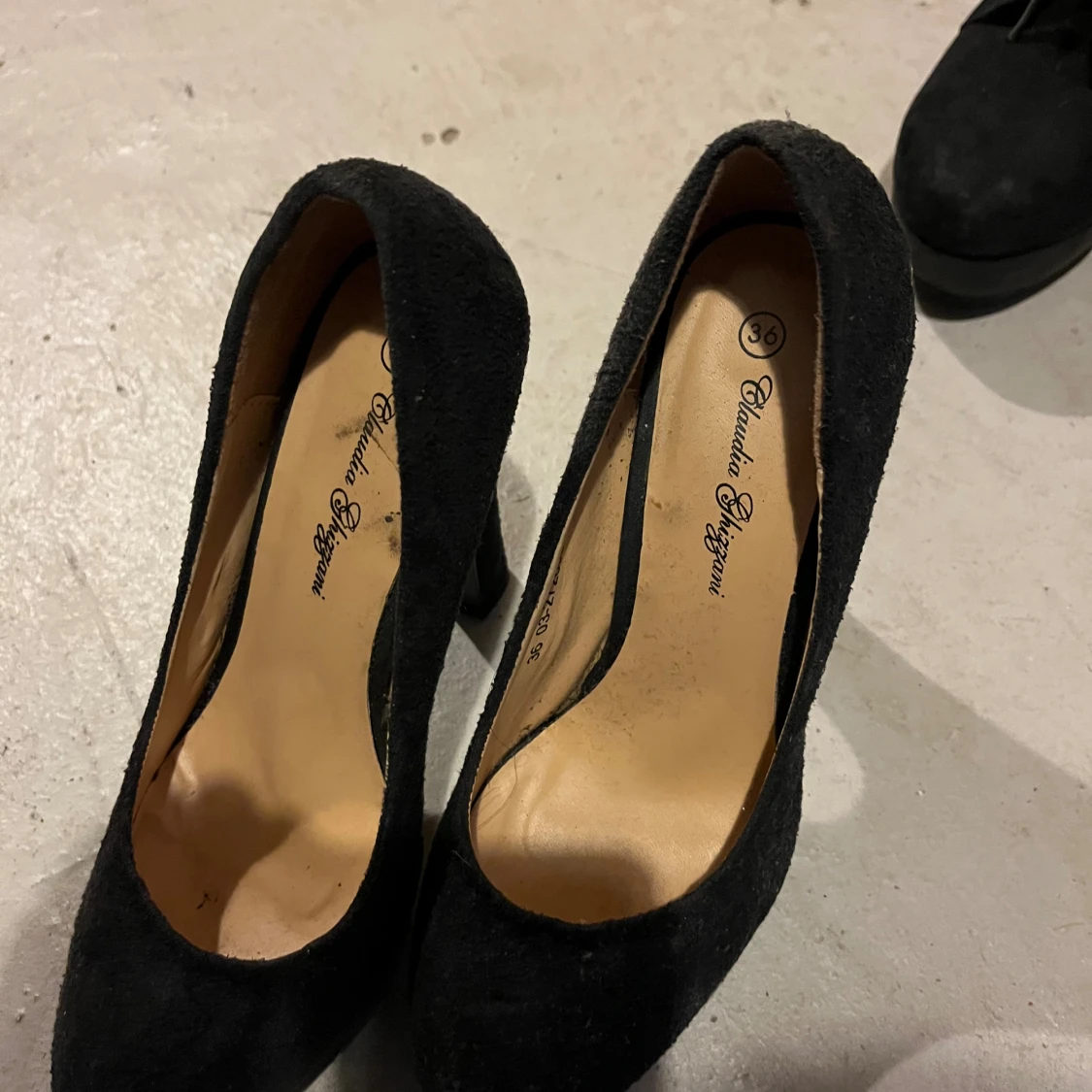 Klassiska svarta pumps från Claudia Ghizzani med rund tå och hög klack. Skorna är i mocka och har en stilren, tidlös design som passar till många olika outfits. Perfekta för dig som gillar en elegant look med lite extra höjd.