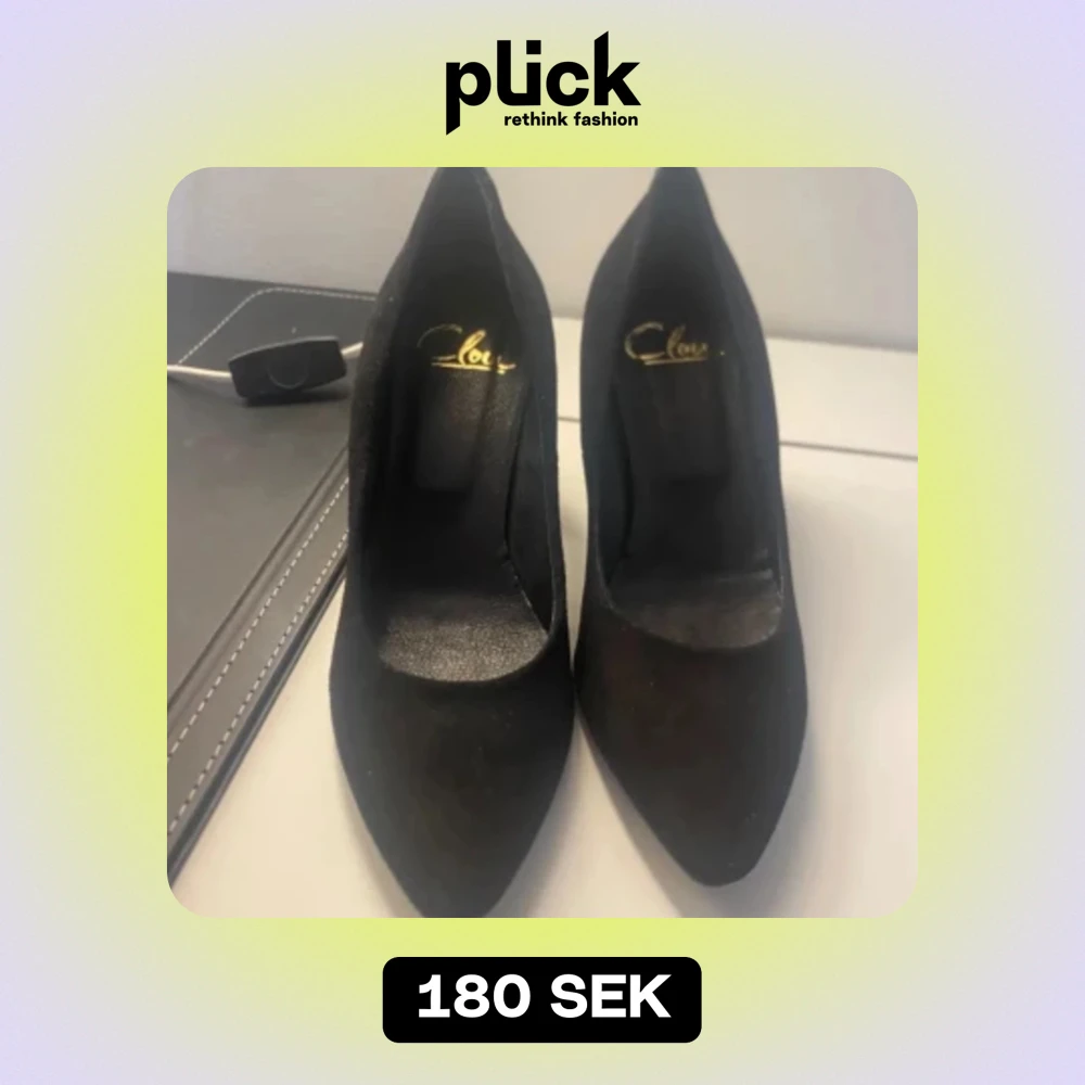Säljer ett par eleganta svarta pumps från Clou i storlek 37. Skorna har en spetsig tå och en stabil klack, perfekta för både fest och vardag. De är i bra skick och redo att användas för att ge din outfit en stilfull touch.