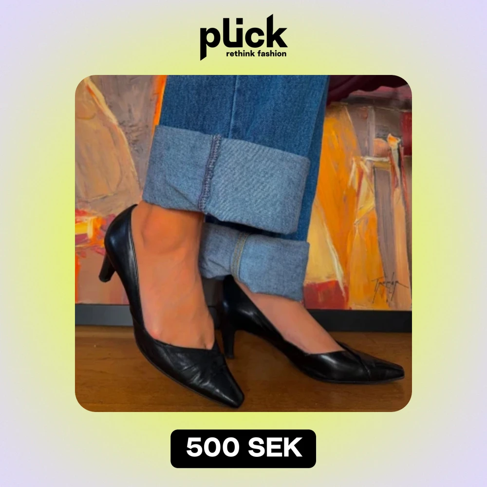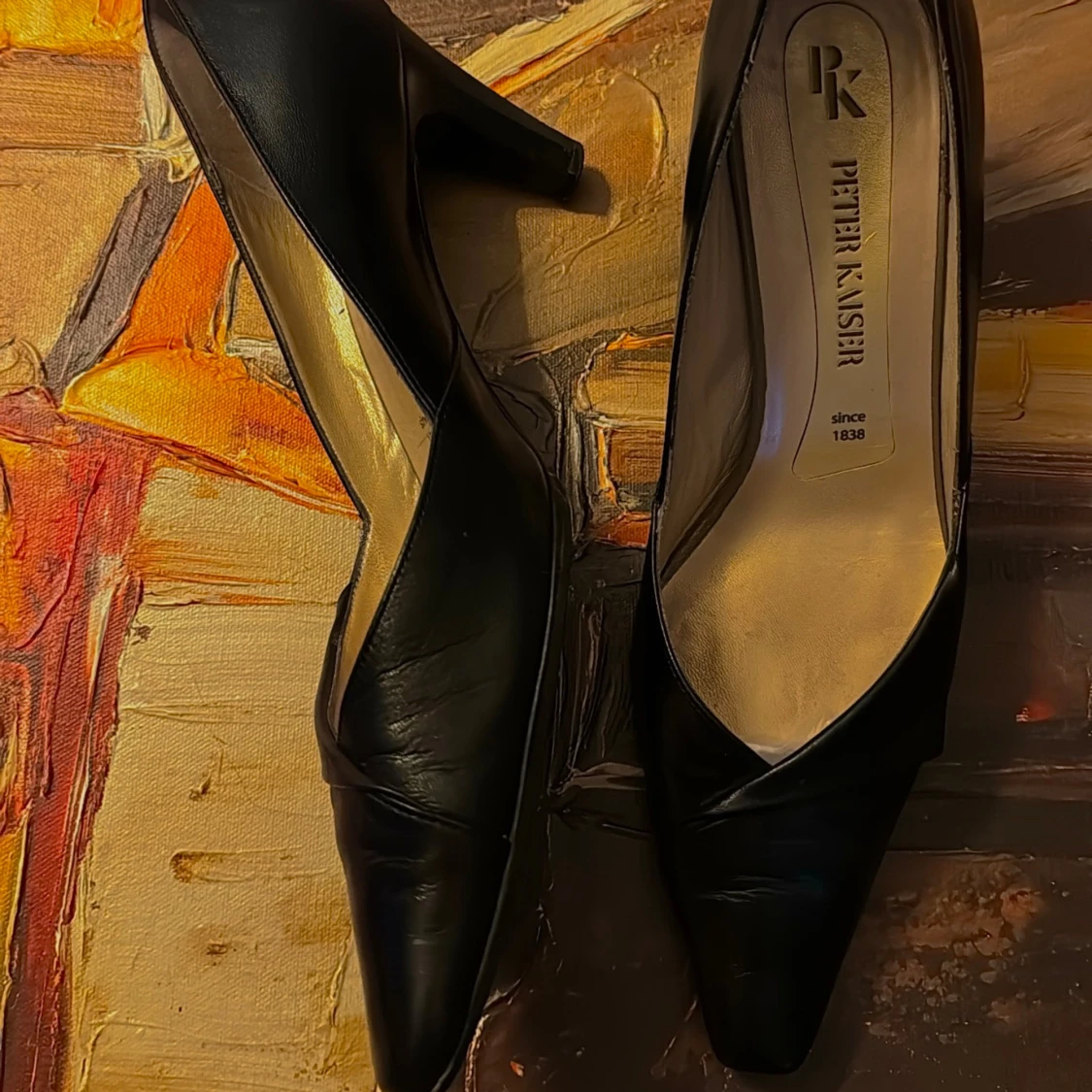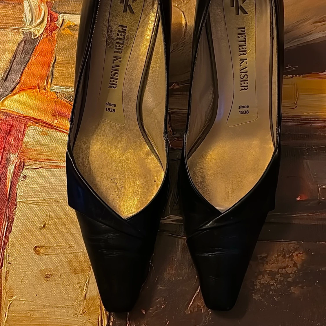 Säljer ett par eleganta svarta pumps från Peter Kaiser. Skorna har en spetsig tå och är tillverkade i skinn, vilket ger dem en lyxig känsla. Perfekta för både fest och mer formella tillfällen.