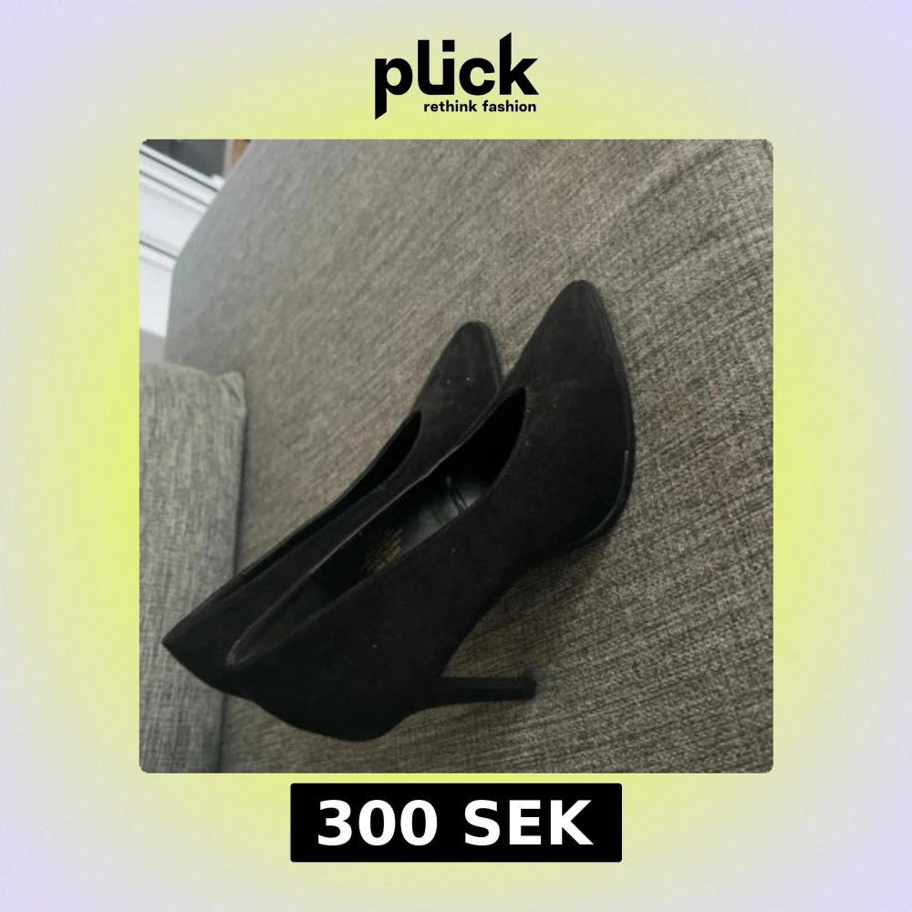 Snygga svarta pumps från H&M i storlek 40. Skorna har en spetsig tå och smal klack som ger en elegant look. Materialet är mocka och de har en klassisk siluett som passar till många olika stilar.