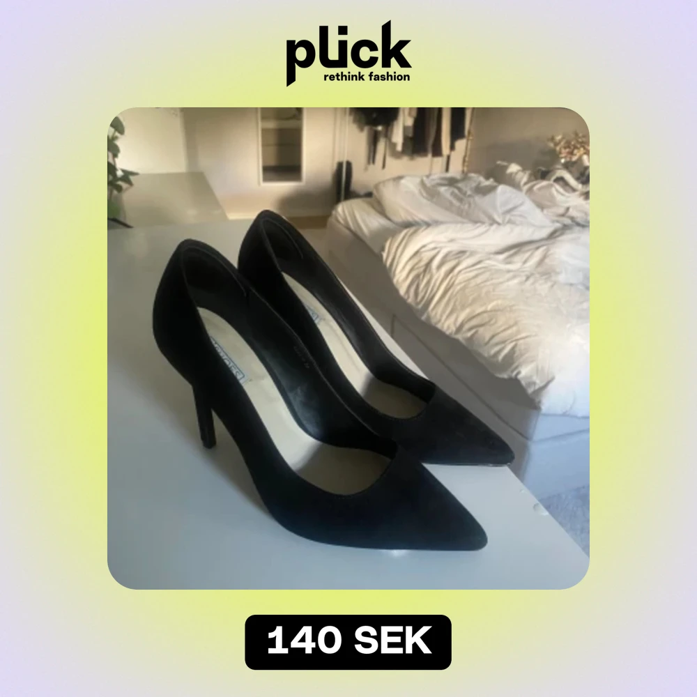 Svarta pumps i mockaimitation från Nelly Shoes, skicket är som nytt och klacken skulle jag säga är ca 9 cm.
