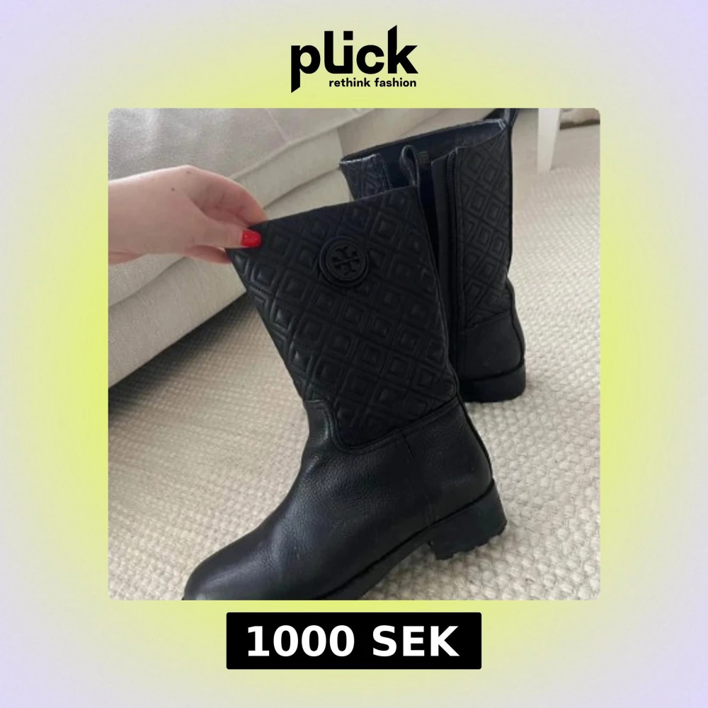 Snygga svarta boots från Tory Burch i skinn med quiltat mönster på skaftet och rund tå. Dragkedja på insidan och tydlig logga framtill. Perfekta för dig som vill ha en stilren men ändå unik look.