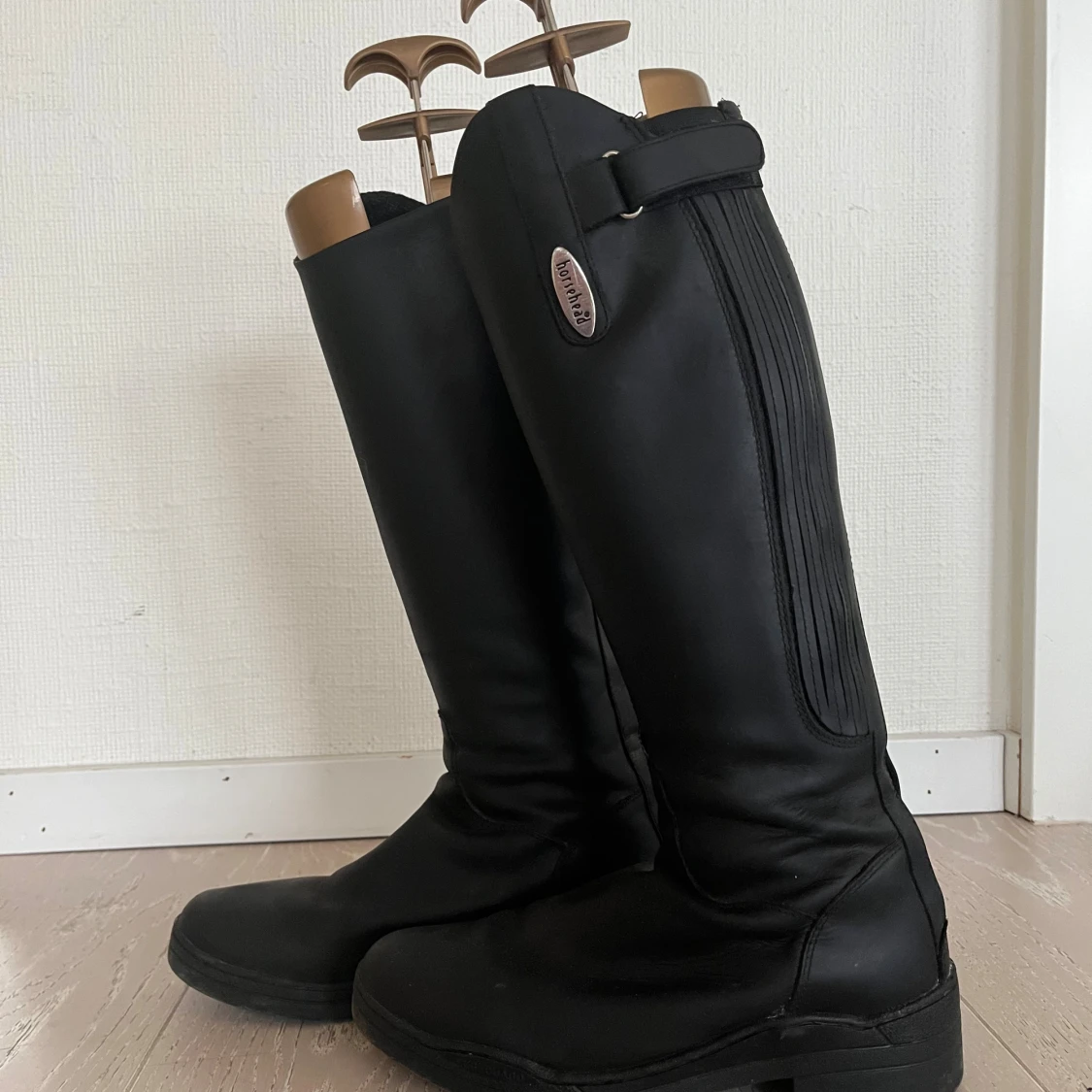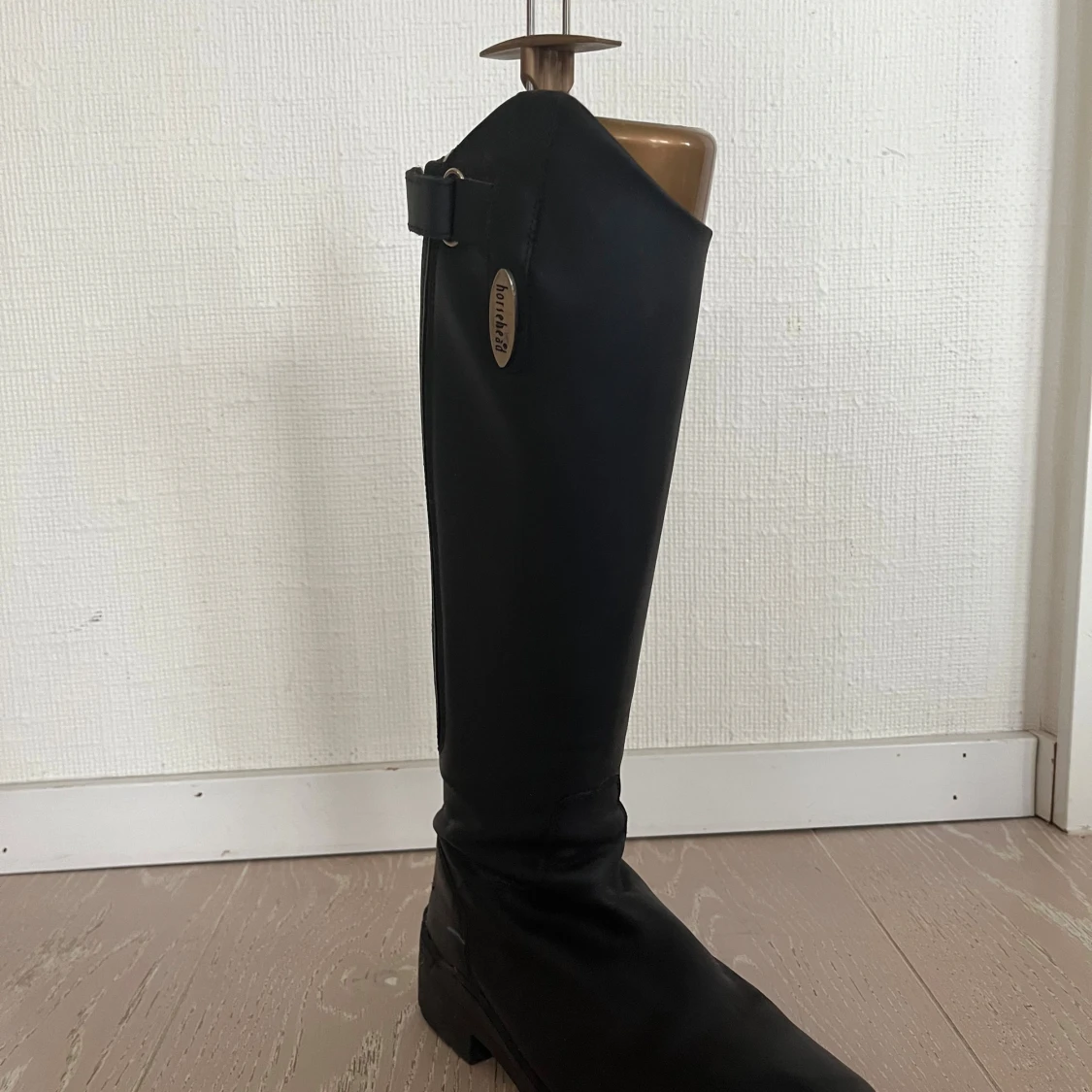 Snygga svarta ridstövlar från Horsehead i skinn med klassisk design och diskret spänndetalj upptill. Storlek 35.