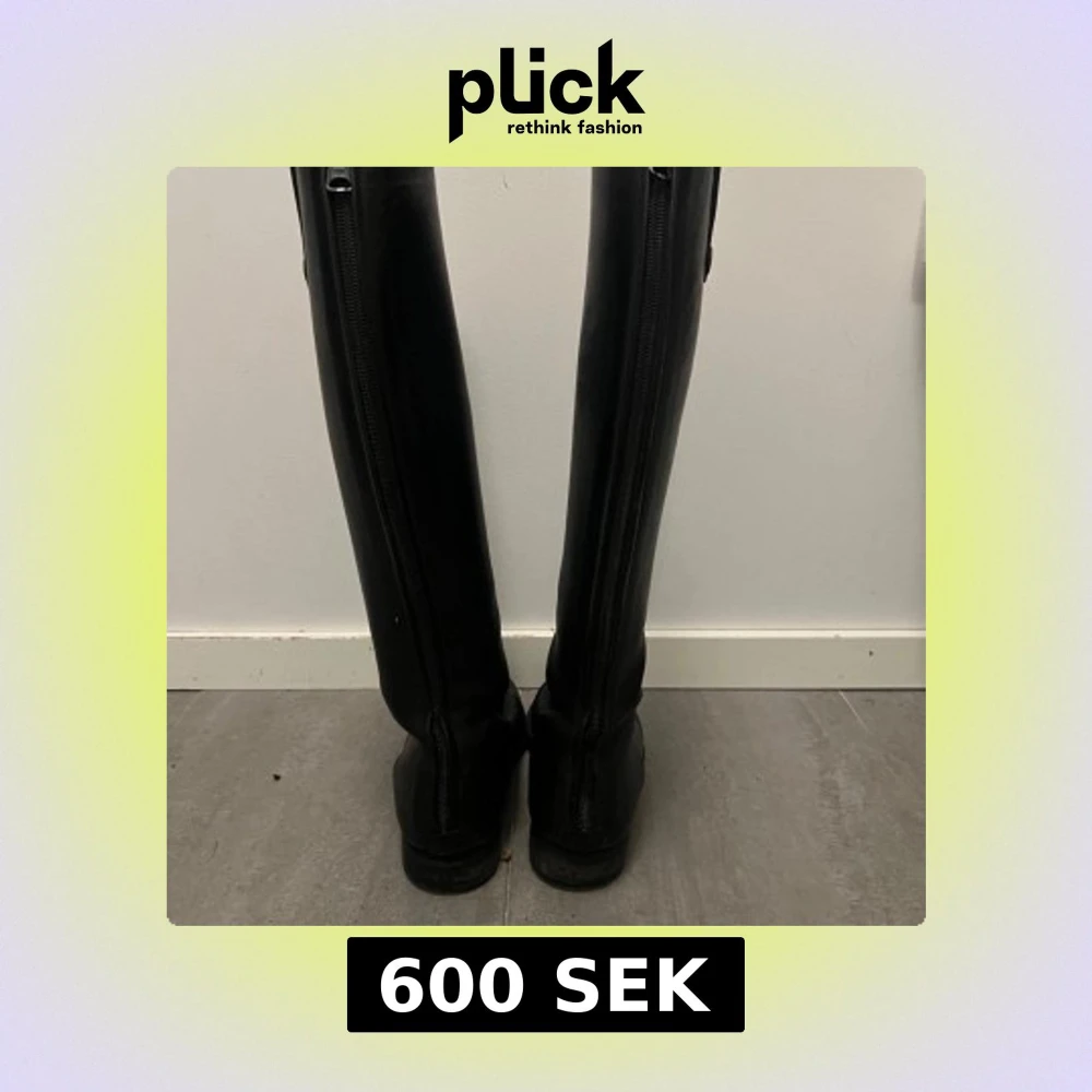 Säljer ett par klassiska svarta ridstövlar med snörning framtill och dragkedja baktill. Funkar som allround men kanske lite mer mot dressyr. Dom är använda ca 2-3 gånger pga fel strl. Stövlarna har rund tå och låg klack, samt dekorativa knappar upptill. Perfekta för dig som vill ha en stilren look i stallet.