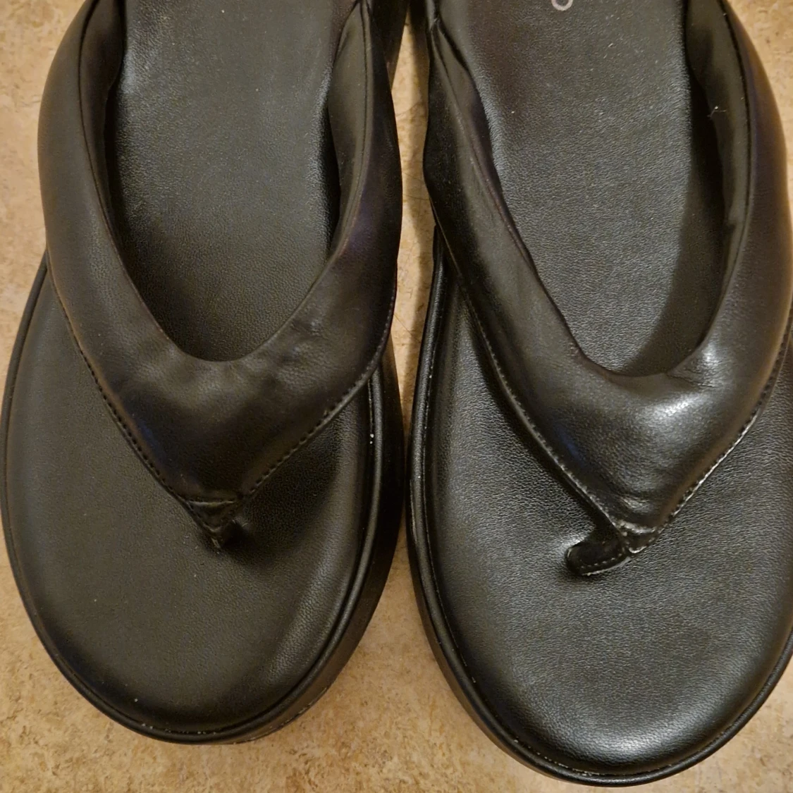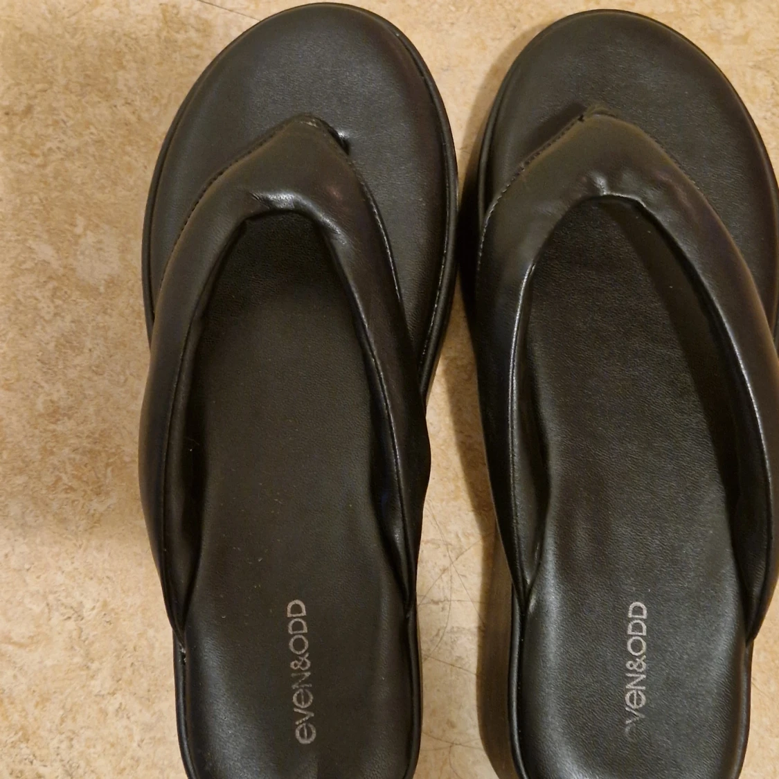 Chunky svarta sandaler från Even&Odd med breda remmar och platt sula. Tillverkade i syntetmaterial med minimalistisk design och rund tå. Perfekta för en chill sommarlook. Obs! Har använt bara en gång