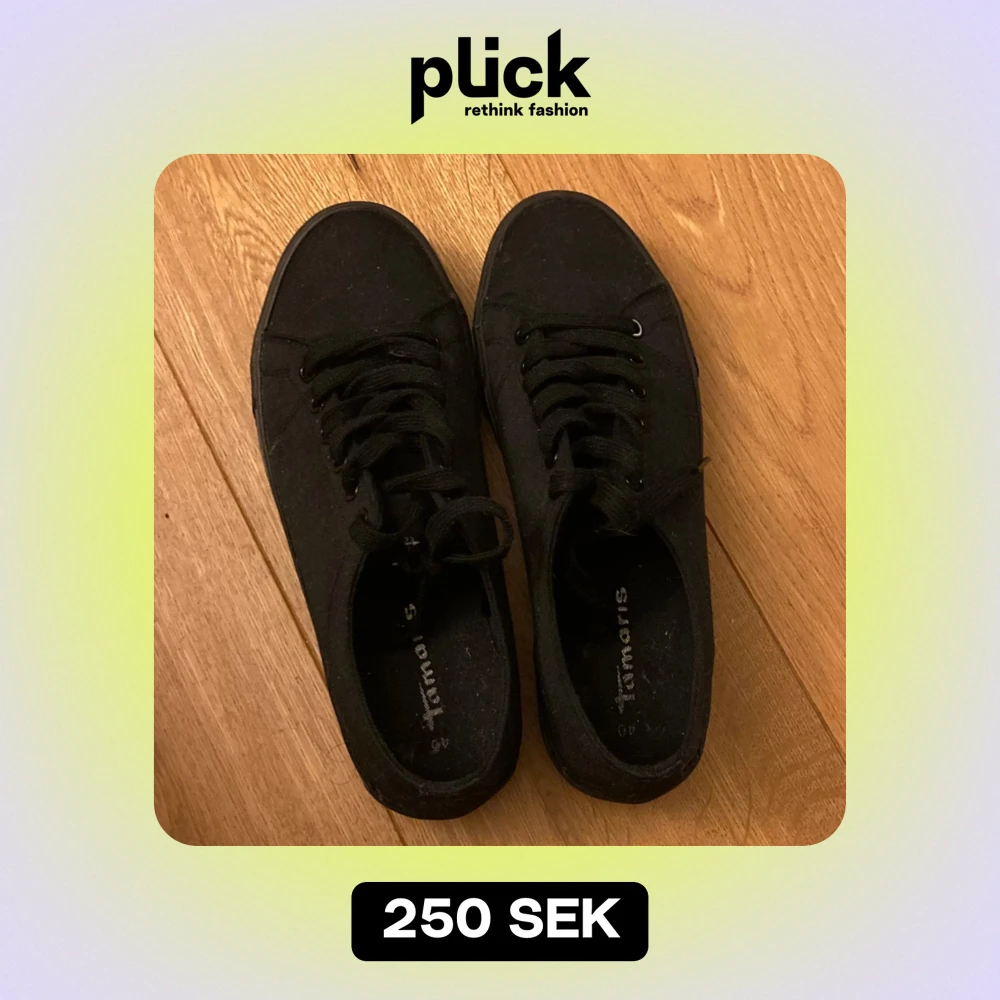 Ett par mycket fina svarta sneakers strl 40. Använda ca 1 gång men säljer pga för stora. Skulle säga att de snarare är en strl 40,5-41. Nypris 324 kr. Frakt ingår ej