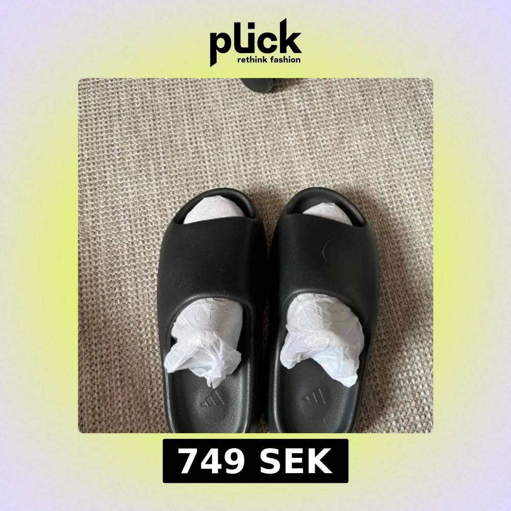 Svarta Adidas slides med öppen tå och bred rem över foten. Tillverkade i syntetmaterial med räfflad sula för extra grepp. Perfekta för sommaren eller att ha hemma. Skicka dm för mer info eller frågor👌😀
