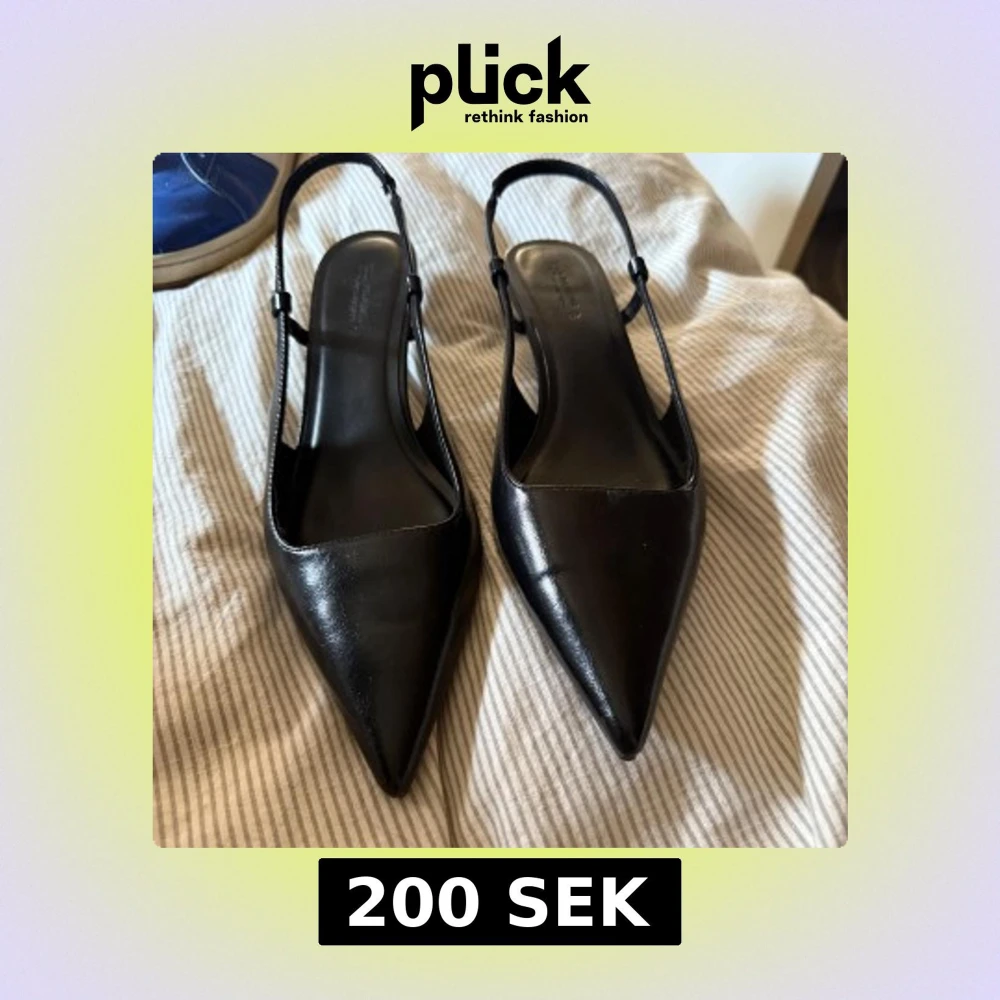 Snygga svarta pumps med spetsig tå och smal klack. Klack höjd på ca 2/3 cm. Aldrig använda, endast testade men hade för breda fötter för dessa, därav säljer jag dom