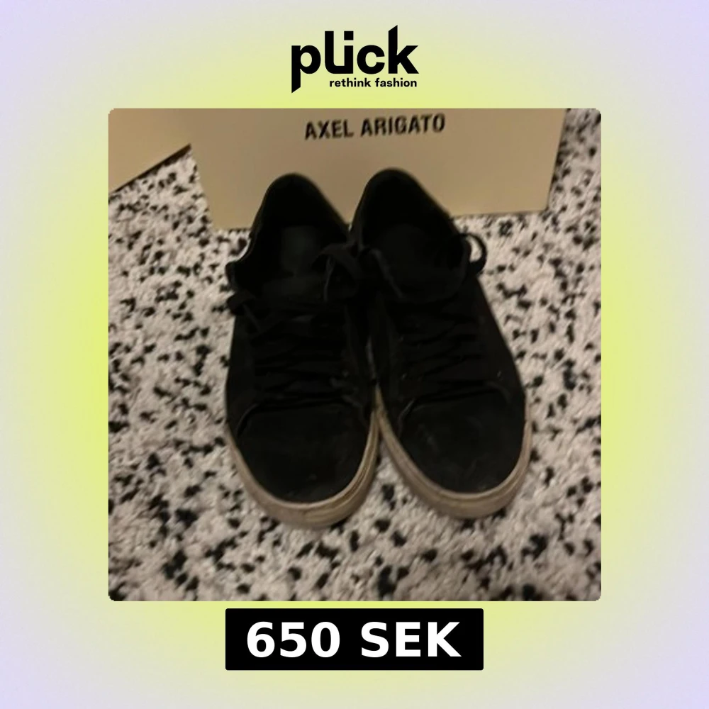 Snygga svarta sneakers från Axel Arigato med klassisk design och snörning. Perfekta för en stilren look. Skorna har en vit sula som ger en fin kontrast till det svarta.
