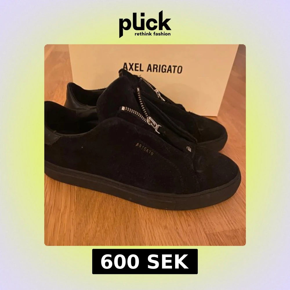 Snygga svarta sneakers från Axel Arigato i mocka med dragkedja som detalj. Perfekta för en stilren look.