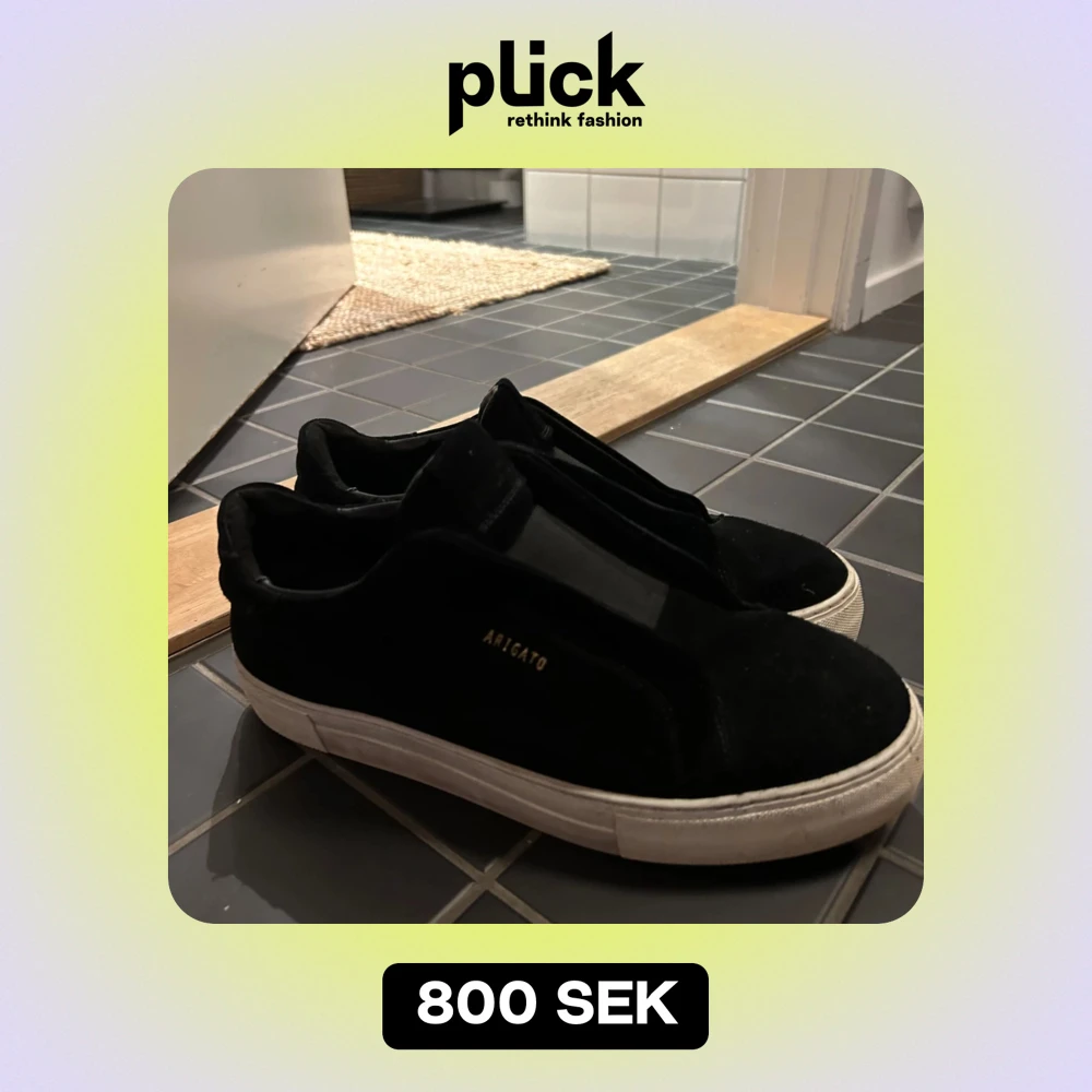Säljer ett par stilrena svarta sneakers från Axel Arigato i bra skick. Skorna har en klassisk design med vit sula och är perfekta för både vardag och fest. De är bekväma och passar till det mesta i garderoben. Perfekt för dig som vill ha en snygg och mångsidig sko! 🖤använda halva förra hösten men inga synliga defekter. Mocka