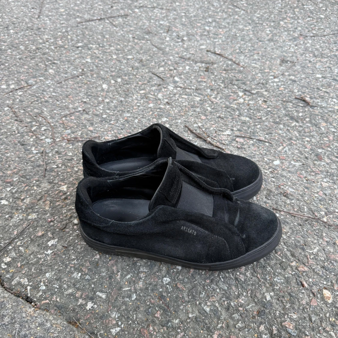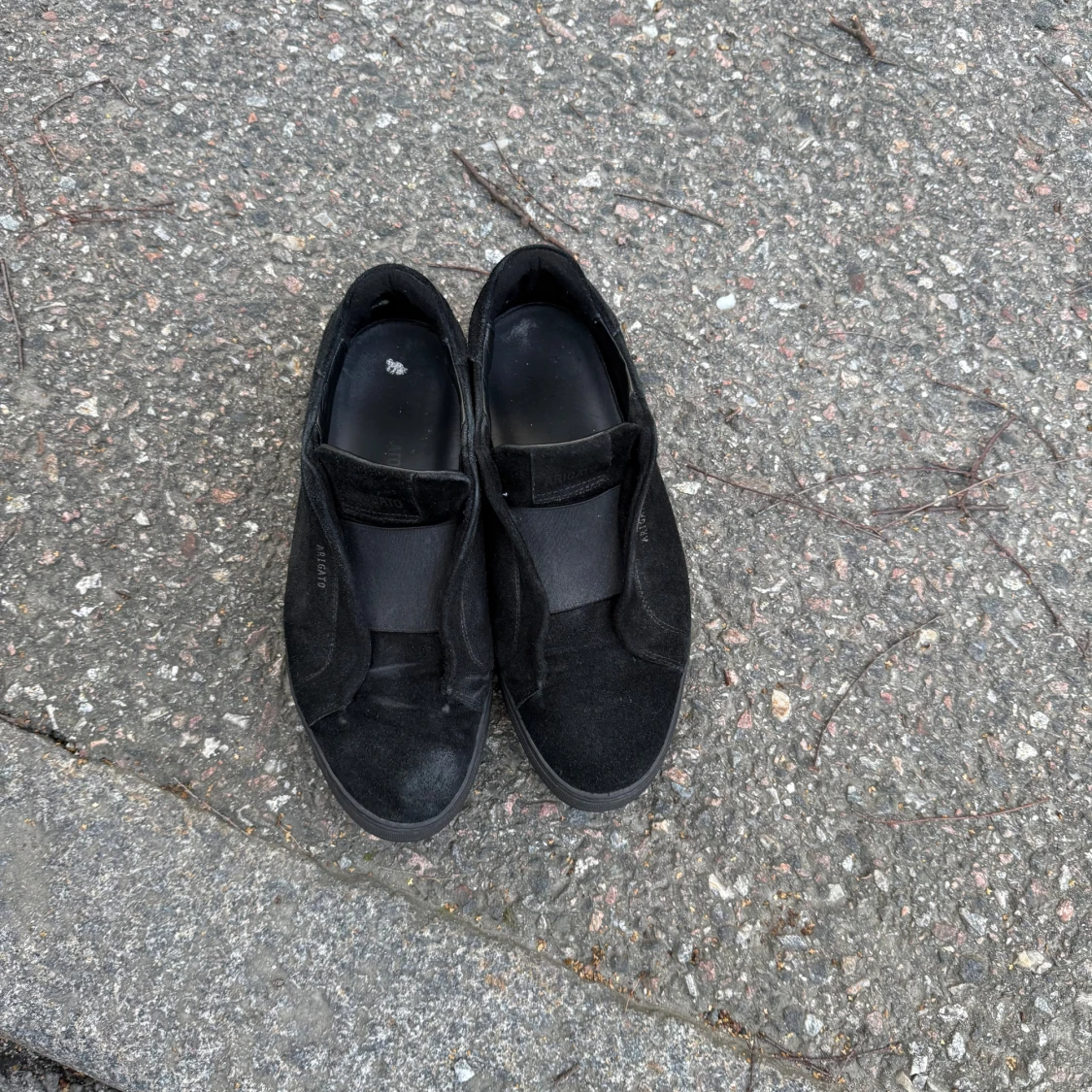 Svarta sneakers från Axel Arigato i mocka med diskret logga på sidan. Skorna har en låg profil, platt sula och elastisk panel över vristen istället för klassisk snörning. Perfekt för dig som gillar minimalistisk och stilren design.