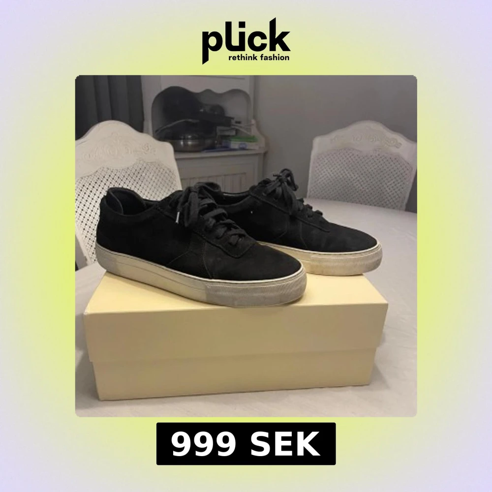 Snygga svarta sneakers från Axel Arigato i mocka med vit sula. Skorna har klassisk snörning och en stilren design som passar perfekt till vardags. Dessa arigato skorna är väldigt sparsamt använda eftersom jag har andra skor. Väldigt bra skick 9/10. Kommer med låda.