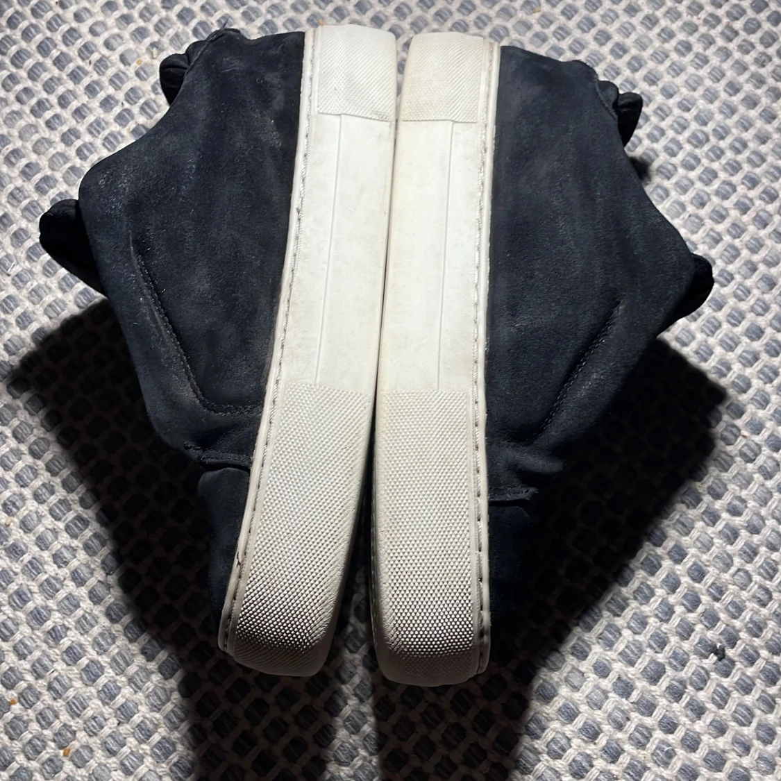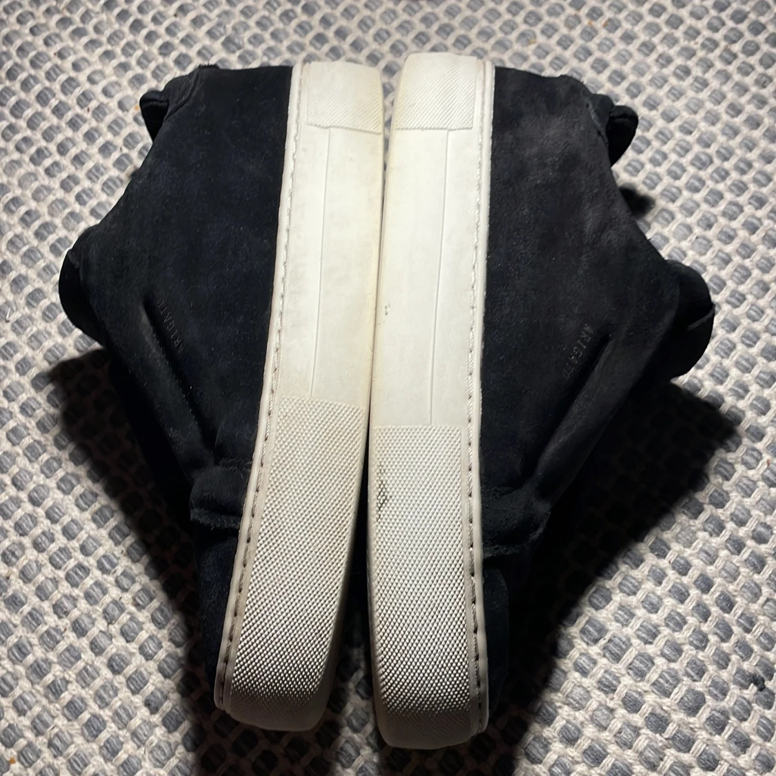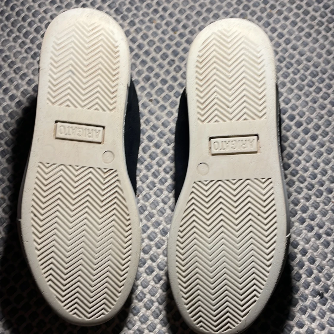 Säljer ett par svarta sneakers från Axel Arigato med vit sula. Skorna har en stilren design utan snörning, vilket gör dem enkla att ta på och av. Perfekta för en avslappnad stil.