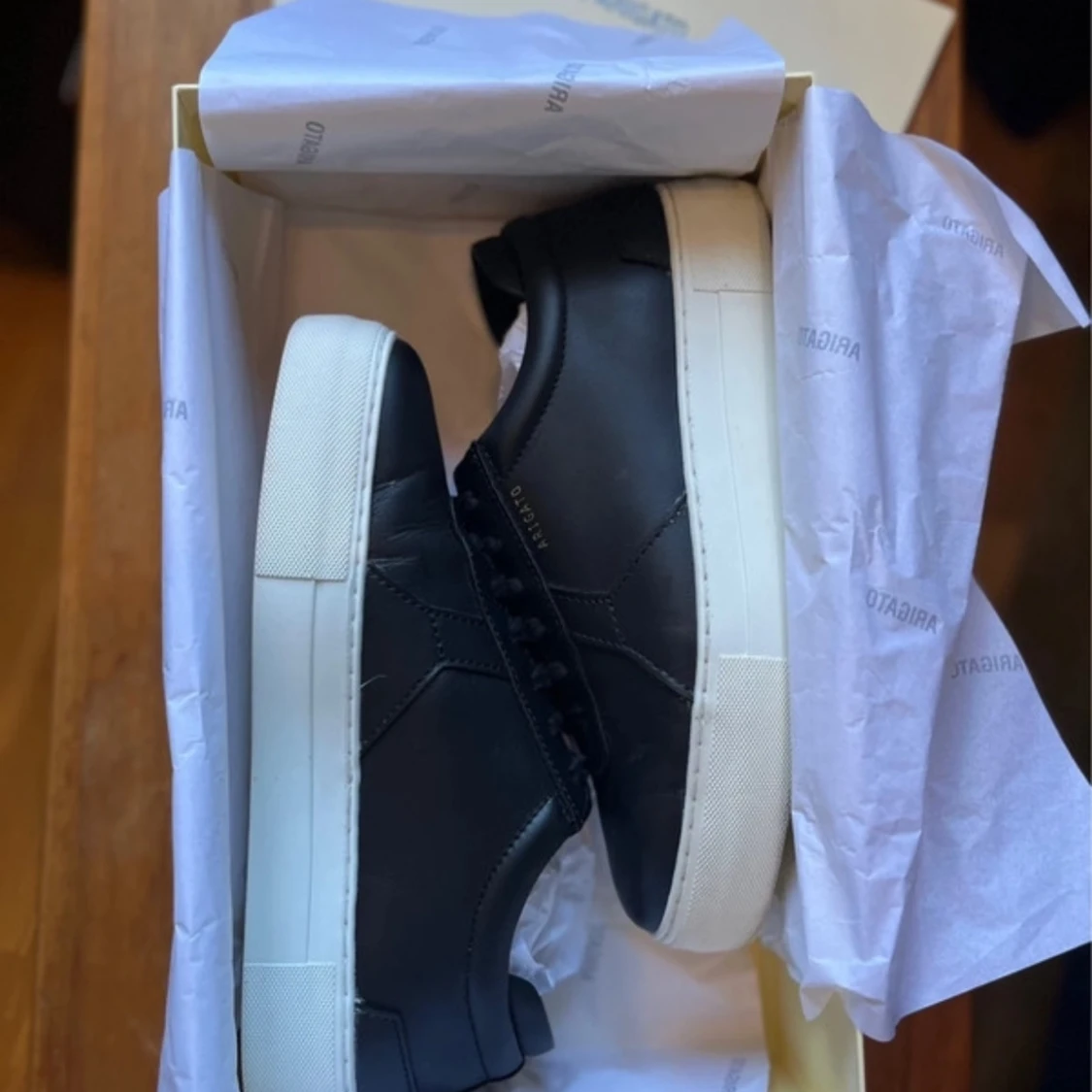 Snygga svarta sneakers från Axel Arigato med vit sula. Levereras med originalförpackning och dustbag. Nypris 3000kr. Knappt använda