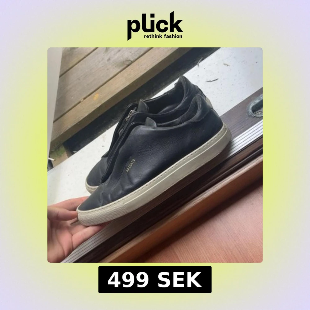 Stilrena svarta sneakers från Axel Arigato i skinn med vit platt sula och dragkedja framtill istället för klassisk snörning. Minimalistisk design med diskret guldtext på sidan. Perfekta för dig som gillar clean och modern look.