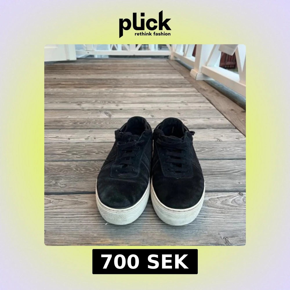 Snygga svarta sneakers från Axel Arigato i mocka med vit platt sula. Klassisk låg modell med snörning och diskret logga på sidan. Perfekta för dig som gillar stilrena och minimalistiska skor med premiumkänsla. Skick 8/10. O.B.S‼️ Dustbag och låda tillkommer, har bara glömt att lägga till den bilden.