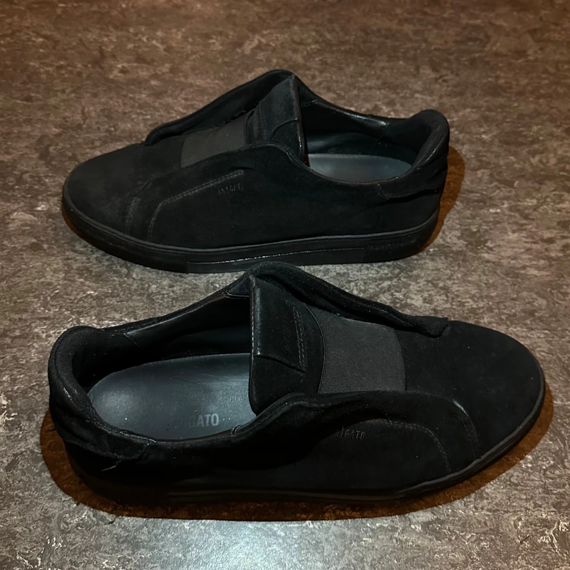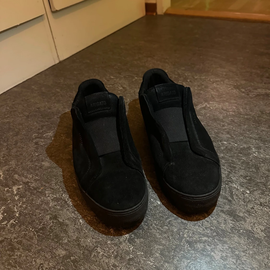 Snygga svarta sneakers från Axel Arigato i mocka. Låg modell med platt sula och rund tå. Perfekt för dig som gillar minimalistisk och stilren design. Jag kan skicka dem inom kort tid!