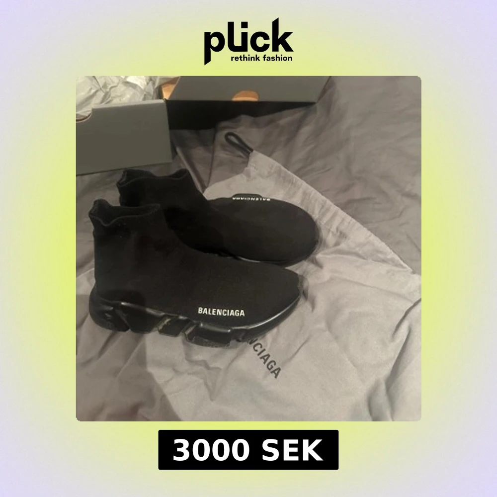 Snygga svarta sneakers från Balenciaga med en strumpliknande design och vit logotyp på sidan. Skorna har en modern och stilren look med en bekväm sula. Skorna är i storlek 35 men passar 36-37 då dom är stretchiga