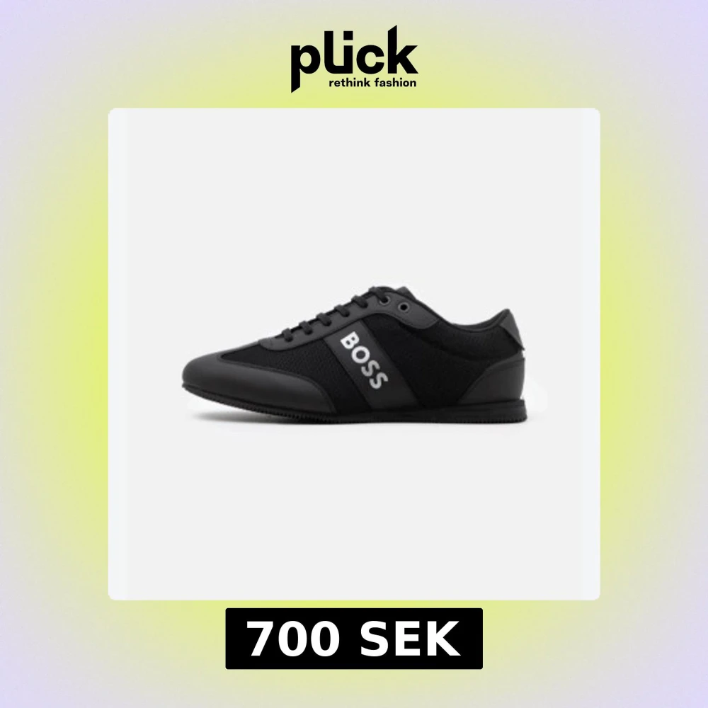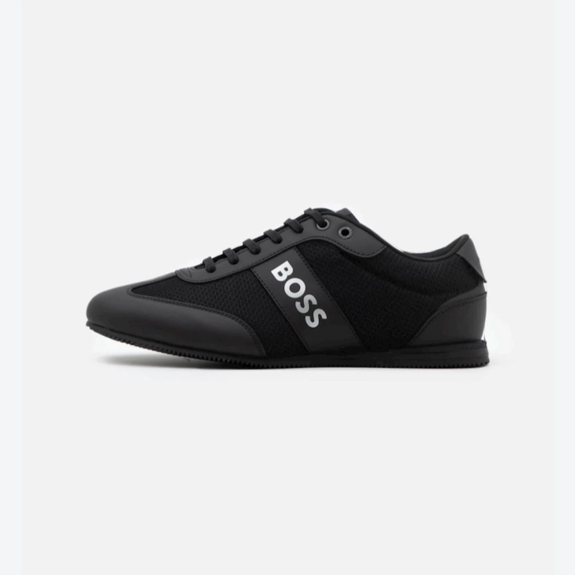 Helt oanvända stilrena svarta sneakers från BOSS med snörning och logotyp på sidan. Skorna har en modern design med en kombination av syntetmaterial och textil för en bekväm passform.