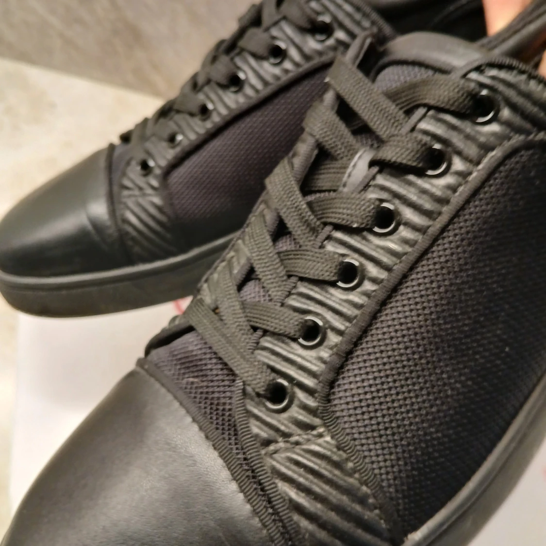 Feta svarta skor från Christian Louboutin med den ikoniska röda sulan. Skorna har en stilren design i skinn och en tyg lik sida. Perfekta för den som vill ha en lyxig touch i vardagen, 💯10/10 skick💯 säljer eftersom de inte passar, !skriv innan köp!