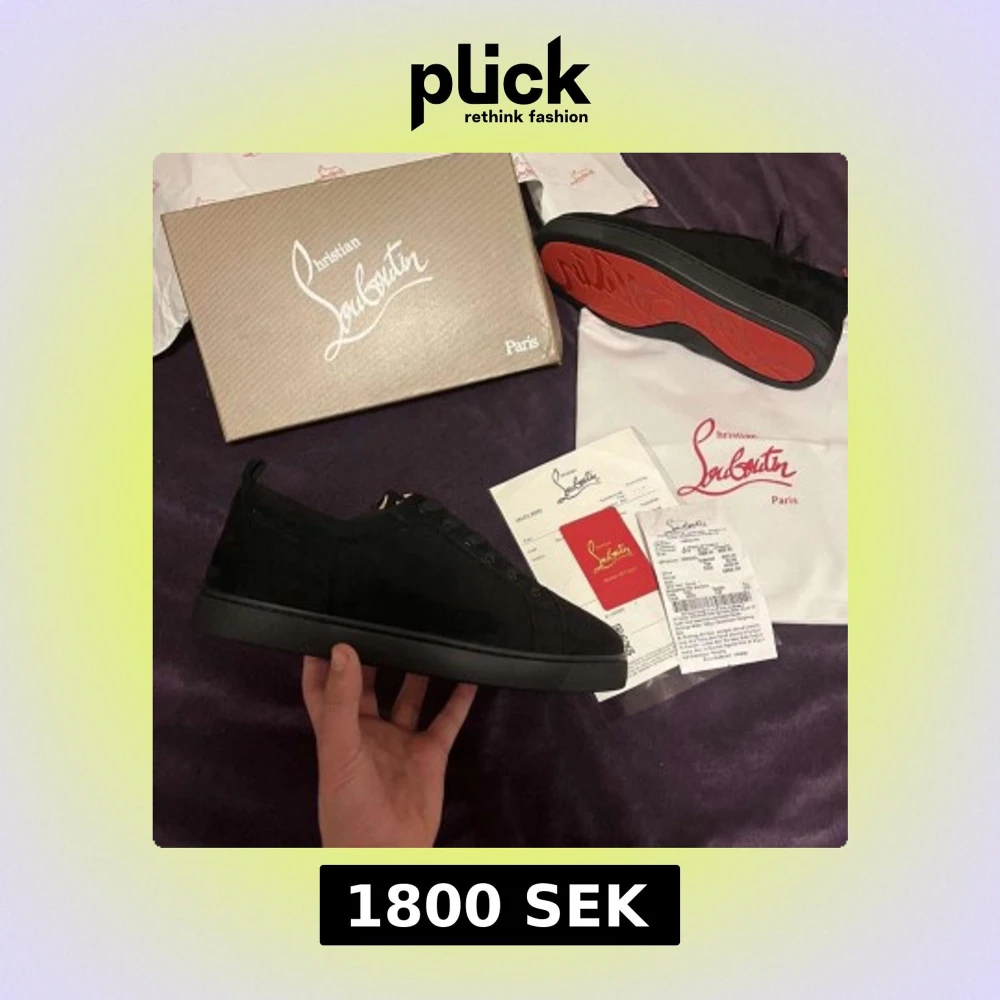Snygga svarta sneakers från Christian Louboutin med den ikoniska röda sulan. Skorna har en stilren design med snörning och är tillverkade i skinn. Perfekta för dig som vill ha en lyxig touch i vardagen.