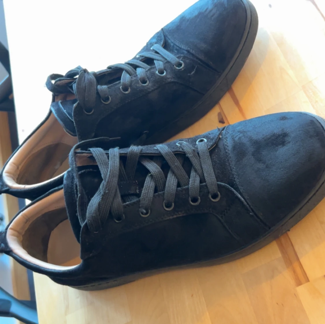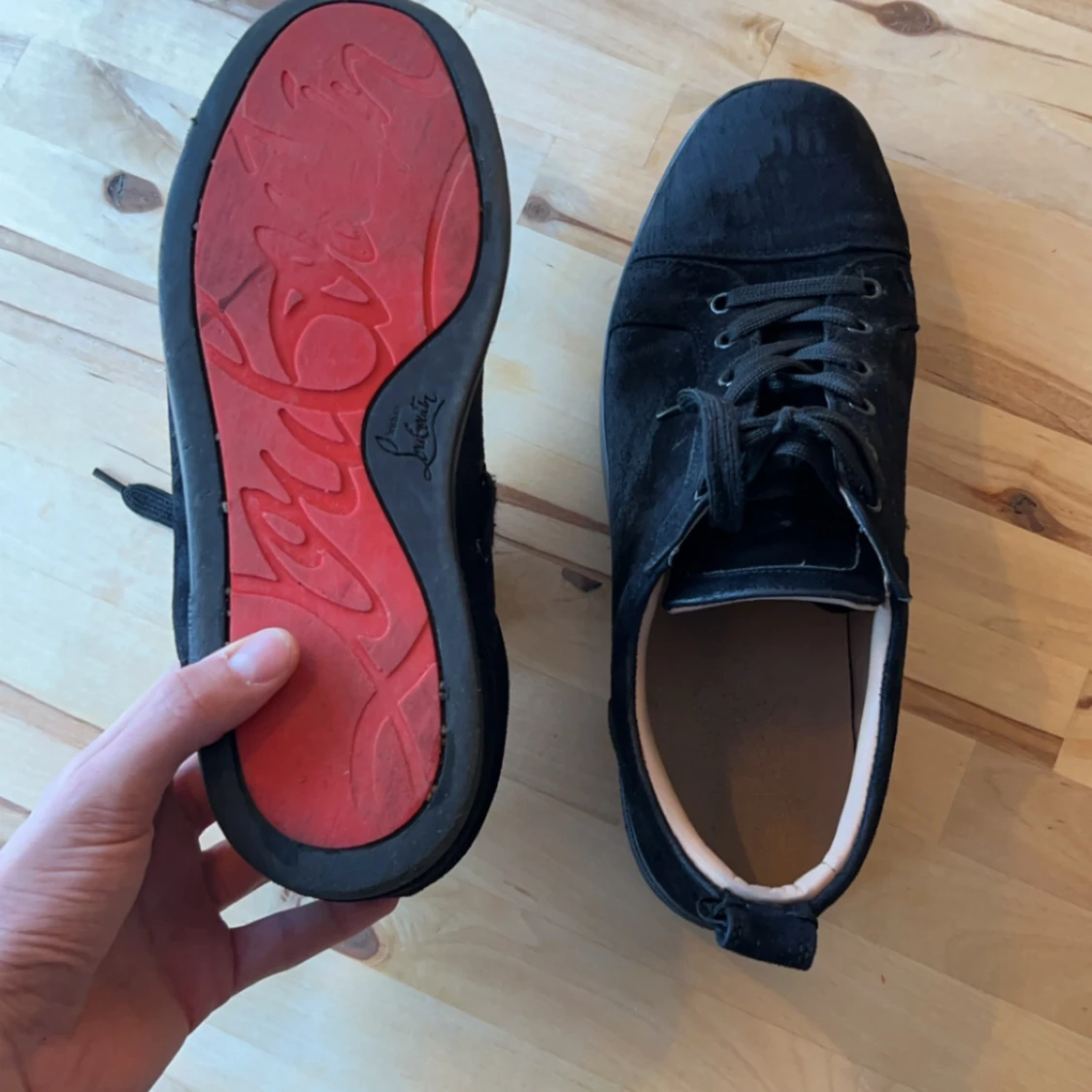 Svarta skor från Christian Louboutin som är ÄKTA! Skick 4/10 och storlek 46. Om ni har några frågor om bilder eller bara allmänt är de bara att fråga. Priset är ej hugget i sten och kan gå ner i pris vid snabb affär.