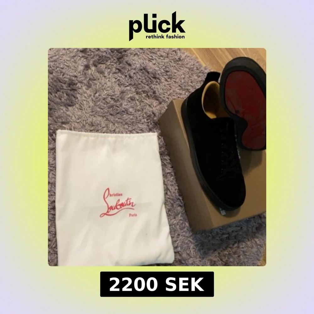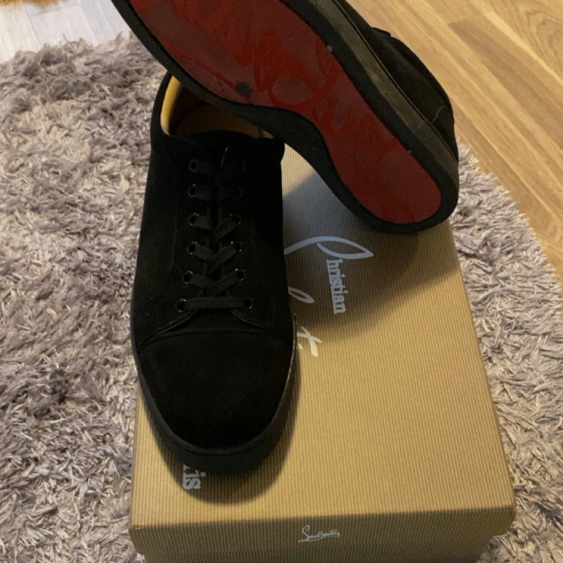 Stilrena svarta sneakers från Christian Louboutin i mocka med klassisk röd sula. Skorna har rund tå, snörning och diskreta detaljer. Perfekta för dig som vill ha en lyxig och tidlös look med en touch av Paris.