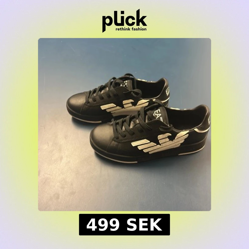Snygga svarta sneakers från EA7 med vita detaljer och logotyp på sidan. Skorna har snörning och en rund tå, vilket ger en klassisk look. Perfekta för en stilren vardagsstil.