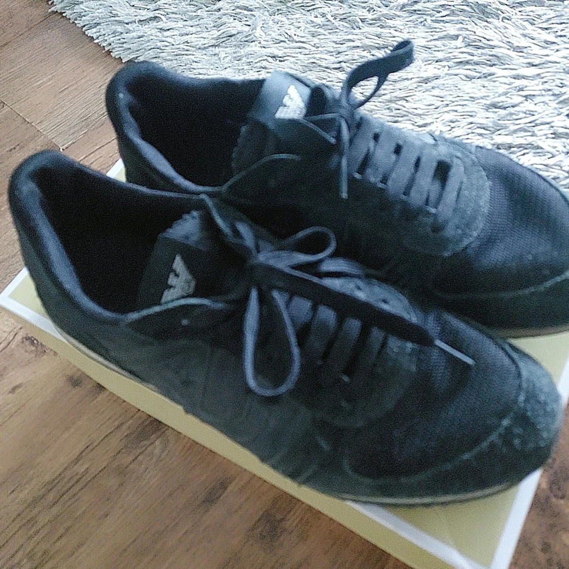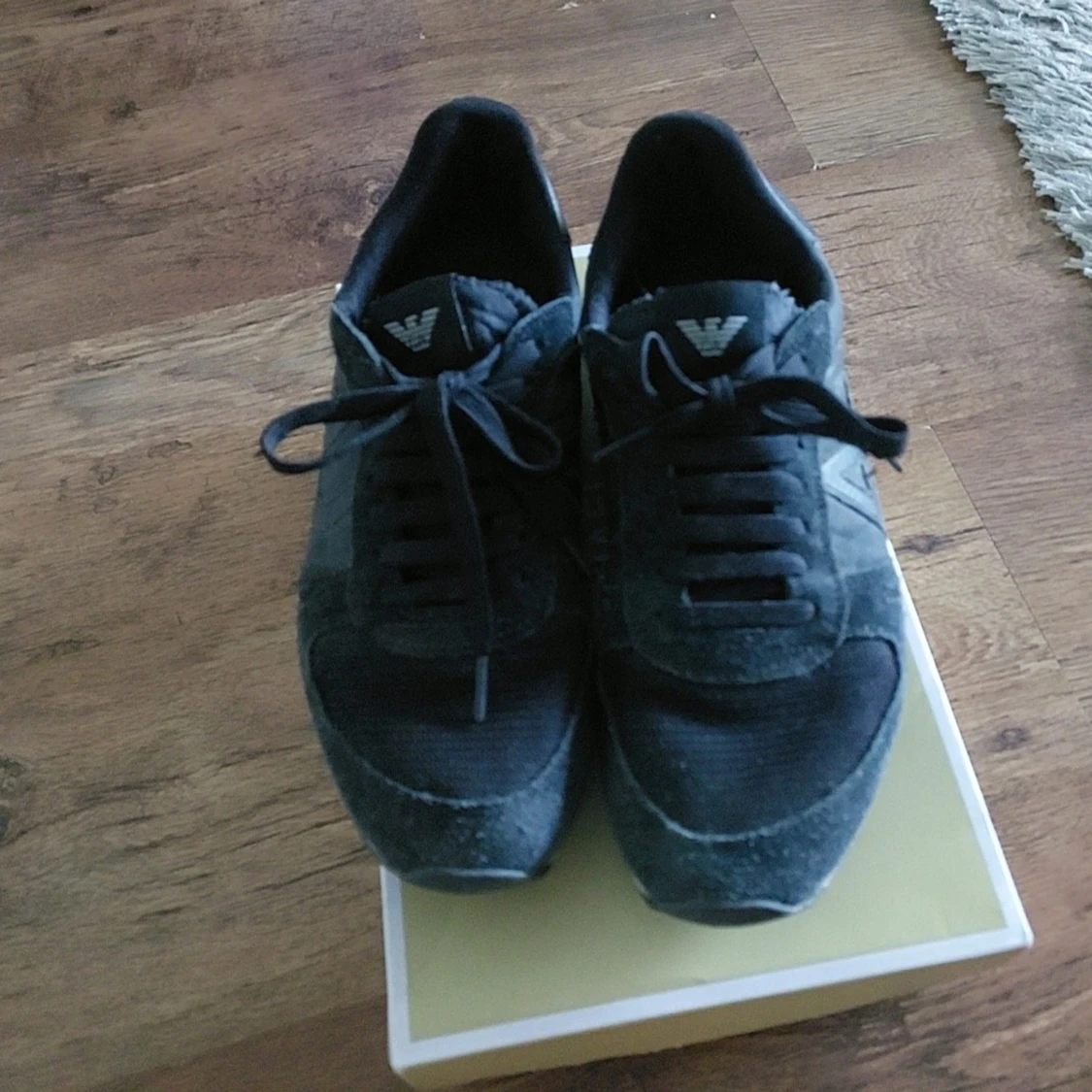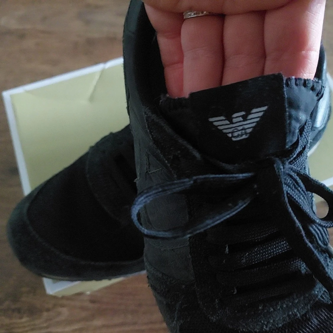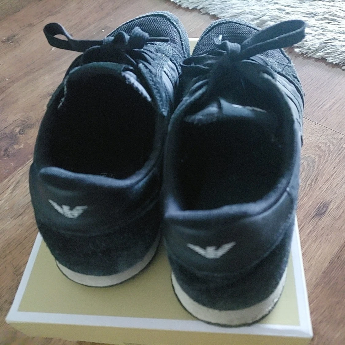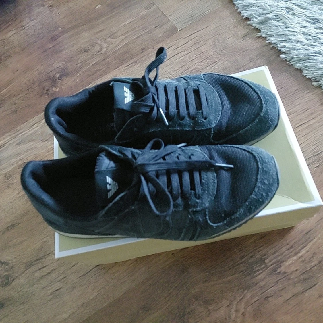 Snygga svarta sneakers från Emporio Armani med klassisk logga på plös och häl. Skorna har en mix av mocka och textil, snörning och rund tå. Perfekta för dig som gillar stilrena och sportiga skor med exklusiv känsla.