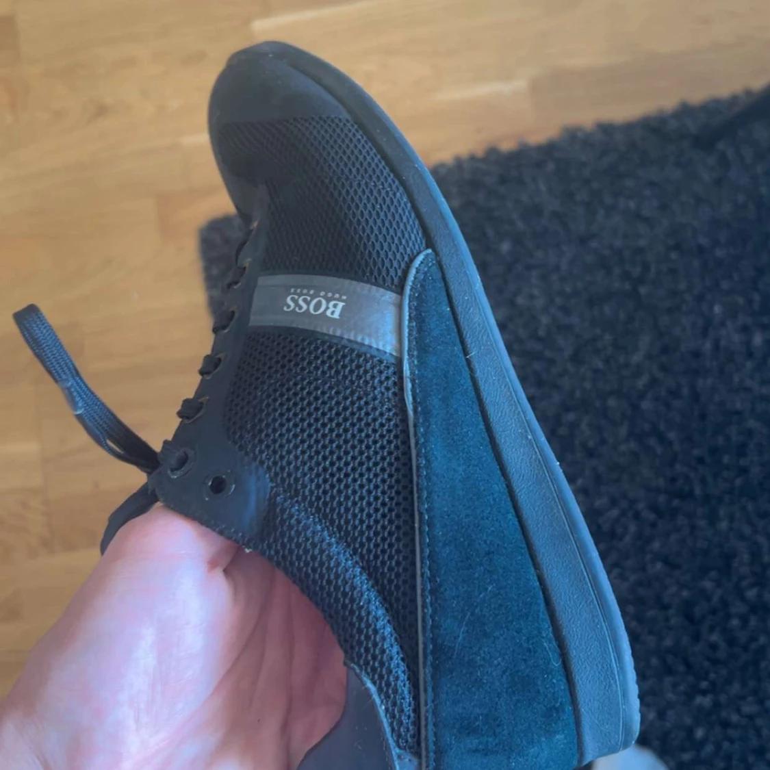 Snygga svarta sneakers från Hugo Boss med meshpaneler och detaljer i mocka. Skorna har snörning och en diskret logga på sidan. Perfekta för dig som gillar stilrena och sportiga skor med en modern touch.