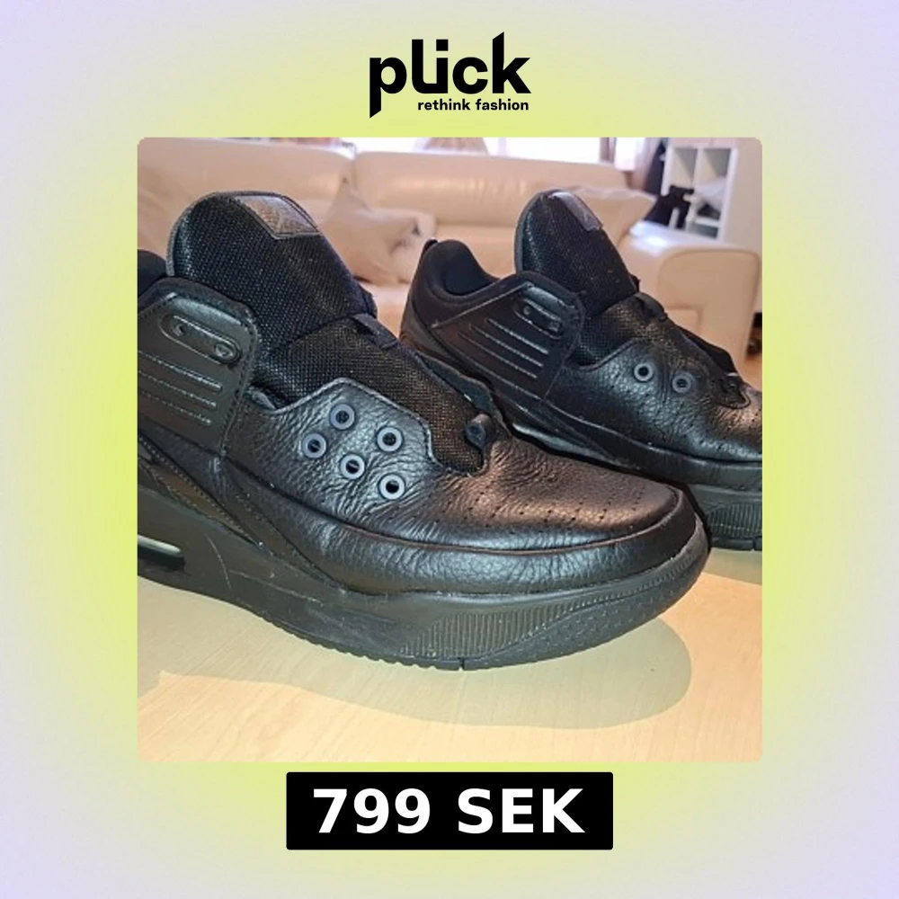 Säljer ett par helsvarta sneakers från Jordan med klassisk siluett och rund tå. Skorna har en platt sula, mesh vid plösen och detaljer i skinn. Perfekta för dig som gillar en clean och sportig look.