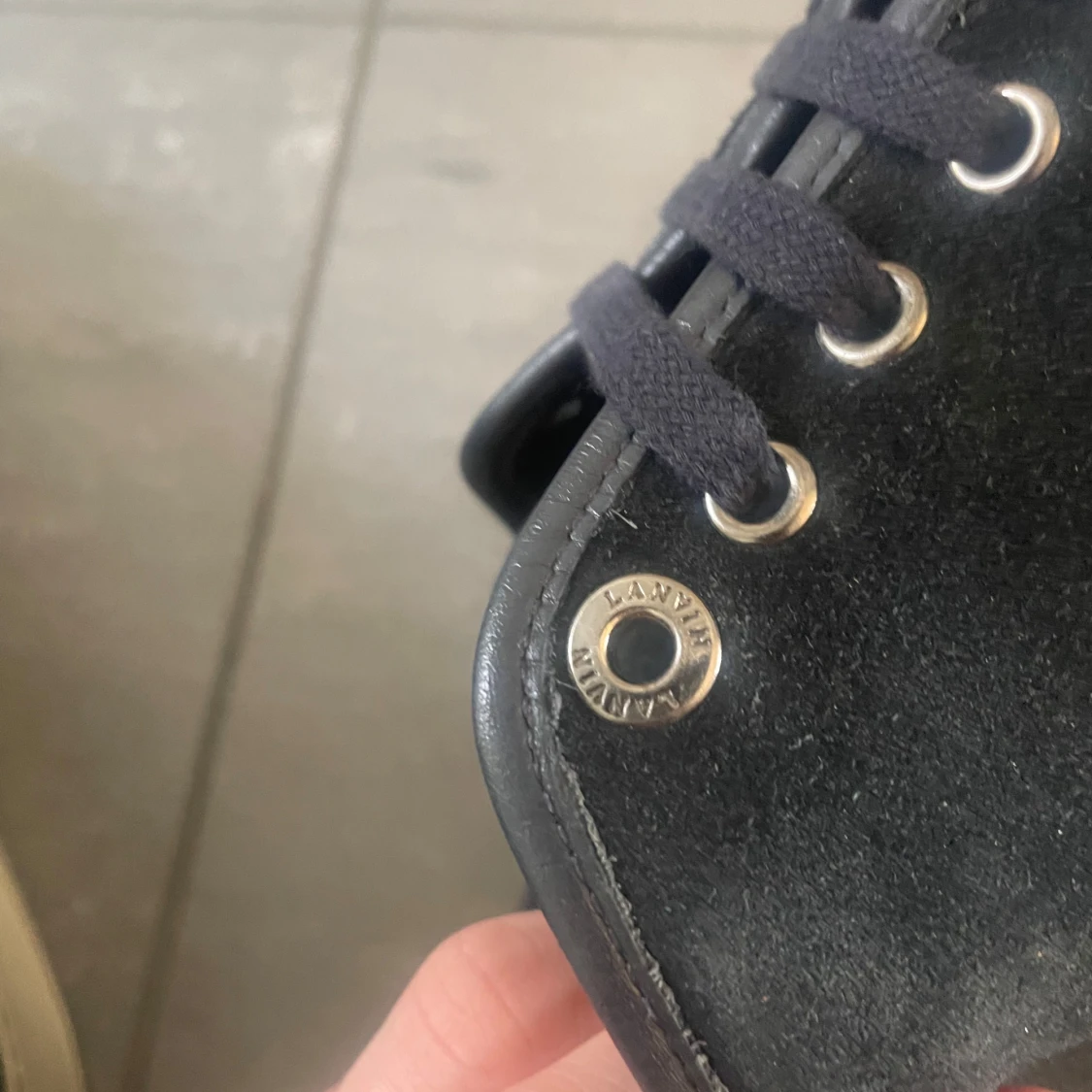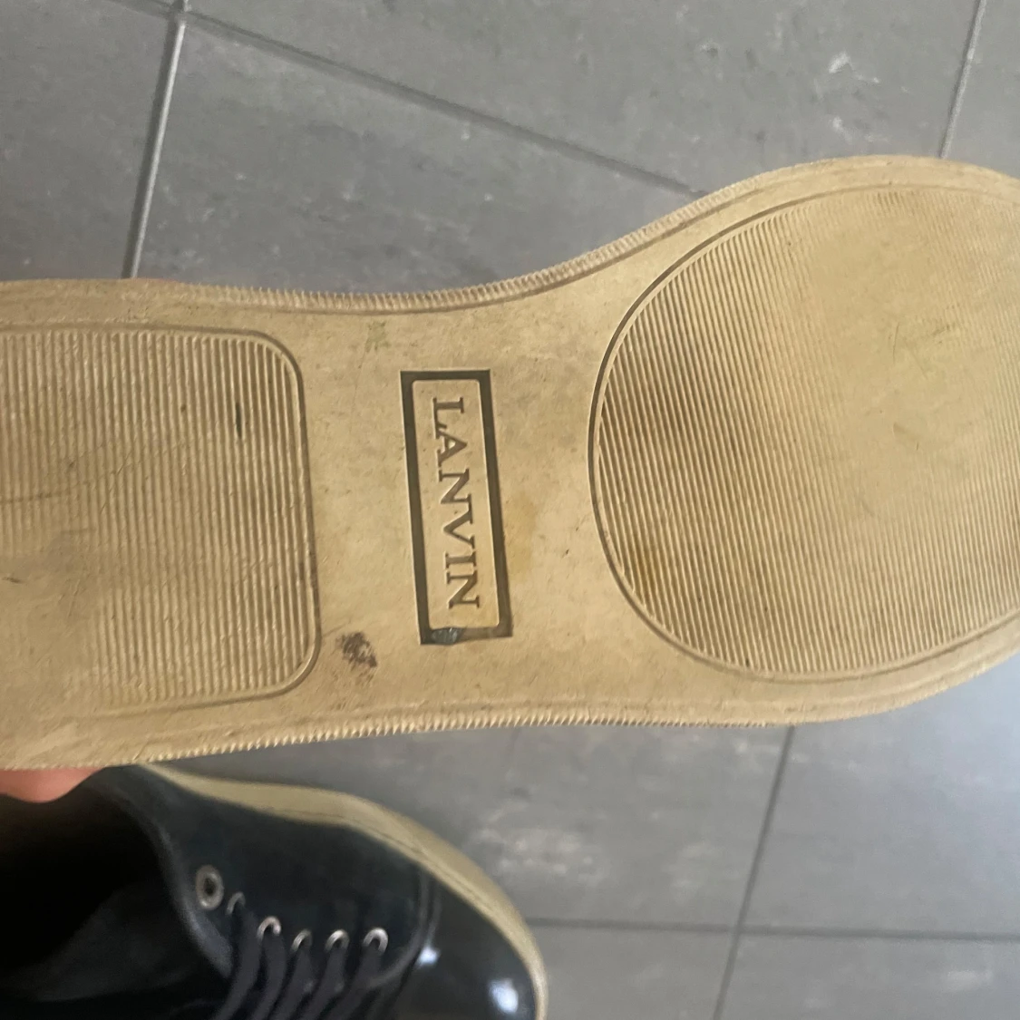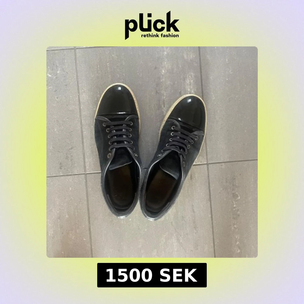 Snygga svarta sneakers från Lanvin med glansig tå och snörning. Perfekta för en stilren look. Skorna har en klassisk design med en modern twist.