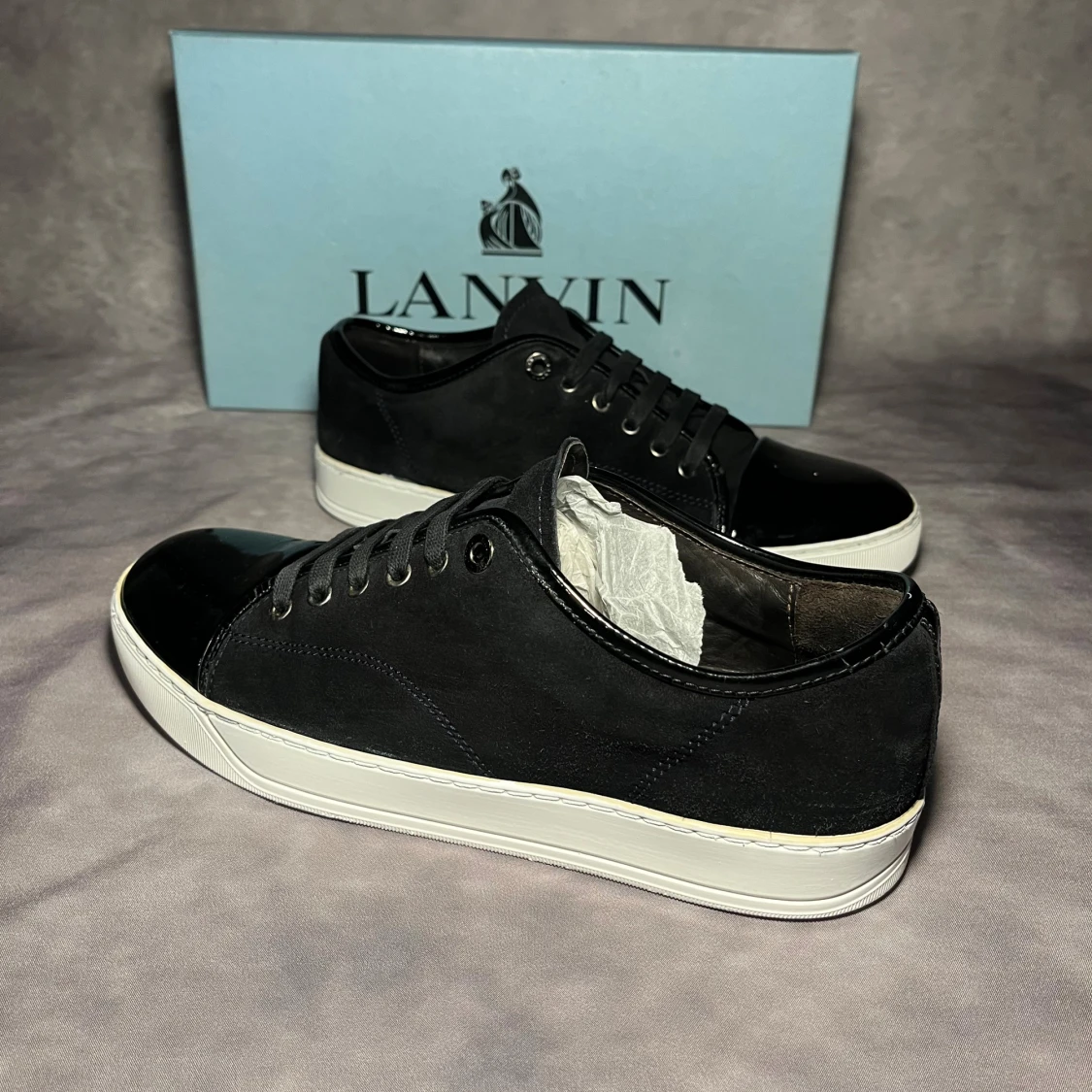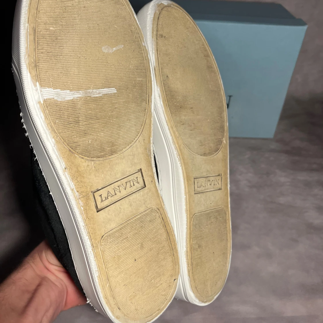 Snygga och klassika svarta sneakers från Lanvin. Skorna är i storlek uk 7 sitter som eu 42. I väldigt gott skick sulkräm har använts för att fräscha upp dom lite. Dustbags fås med