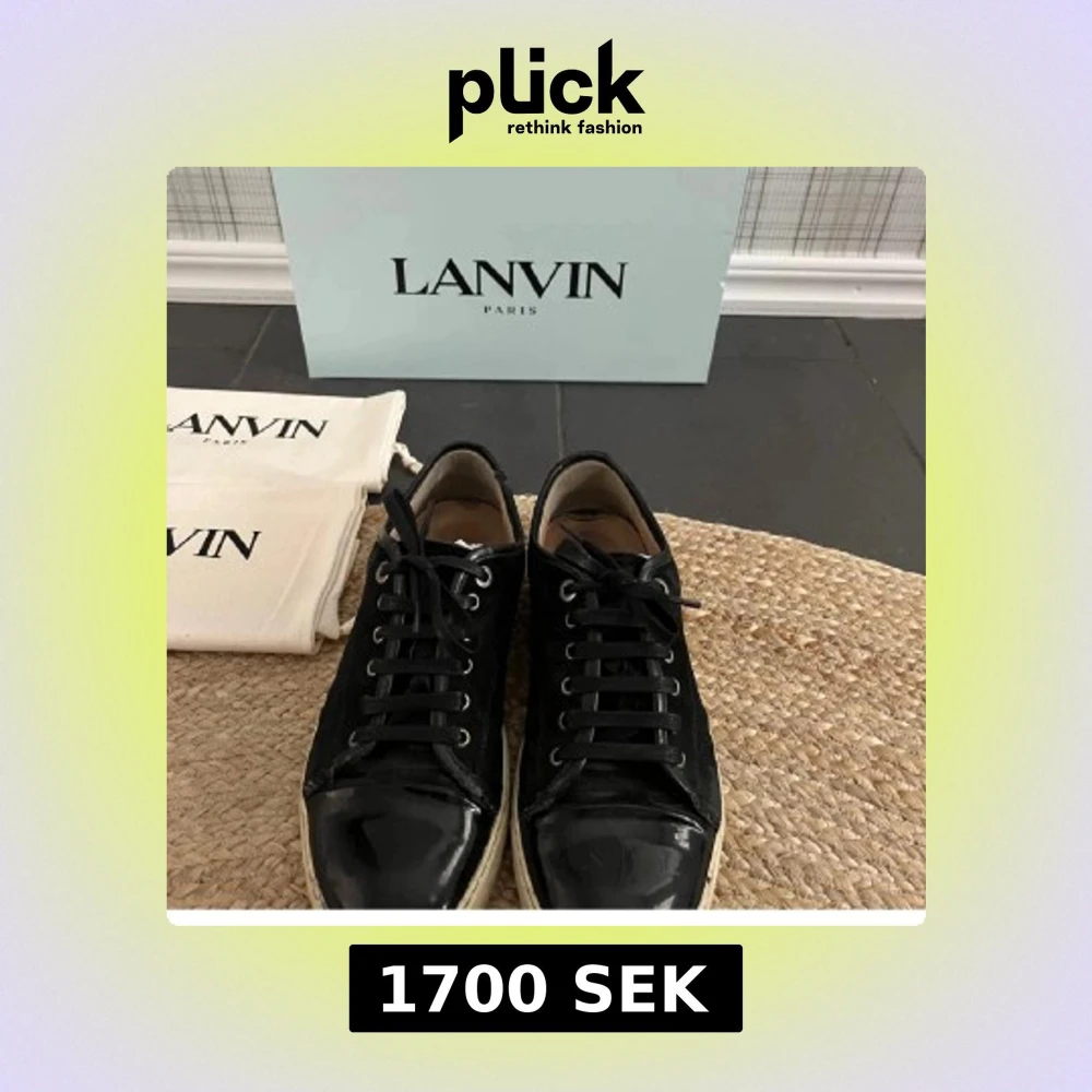 Snygga svarta sneakers från Lanvin med snörning och en stilren design. Skorna har en blank yta och en vit sula som ger en klassisk look. Perfekta för en stilmedveten garderob. Defekt på bild 3,4,5 box ingår om man frågar dust bag ingår ej