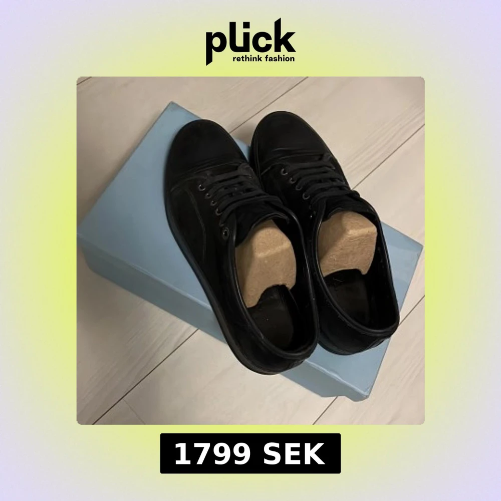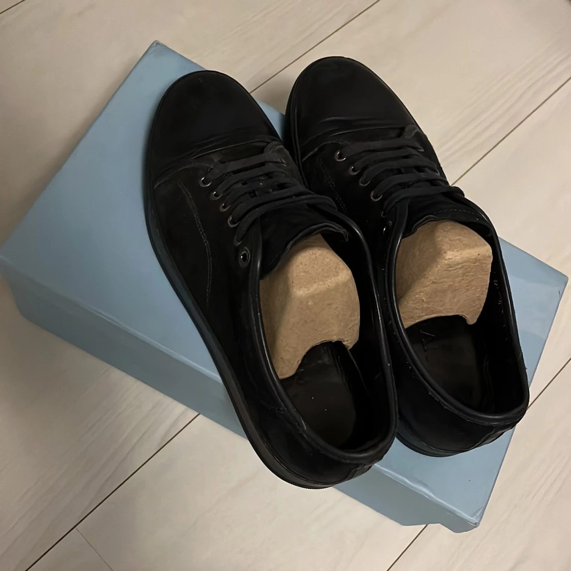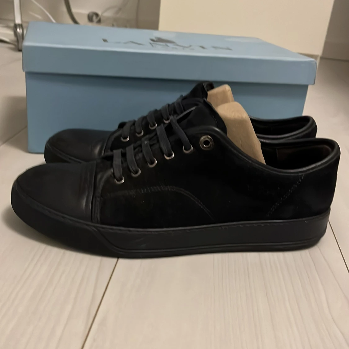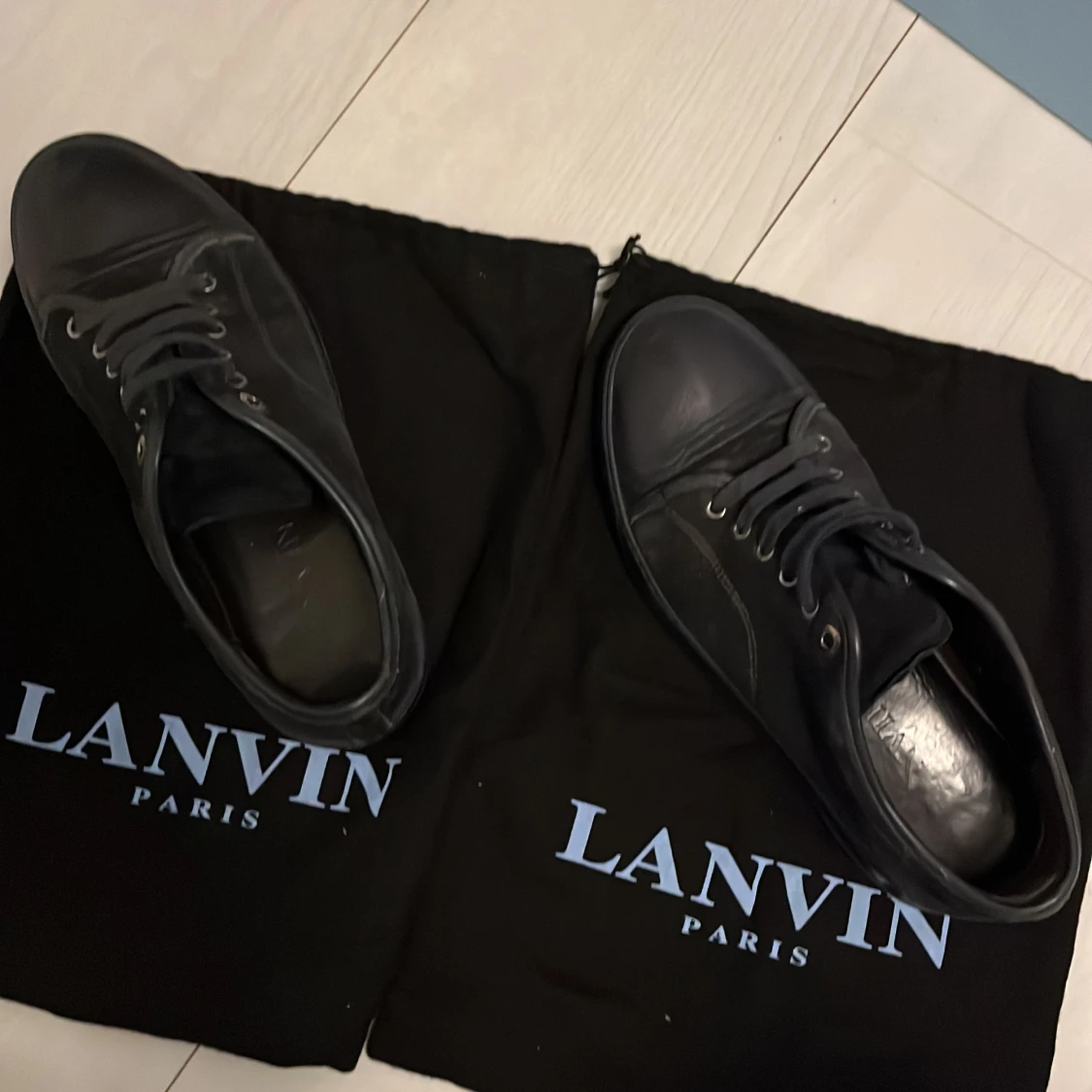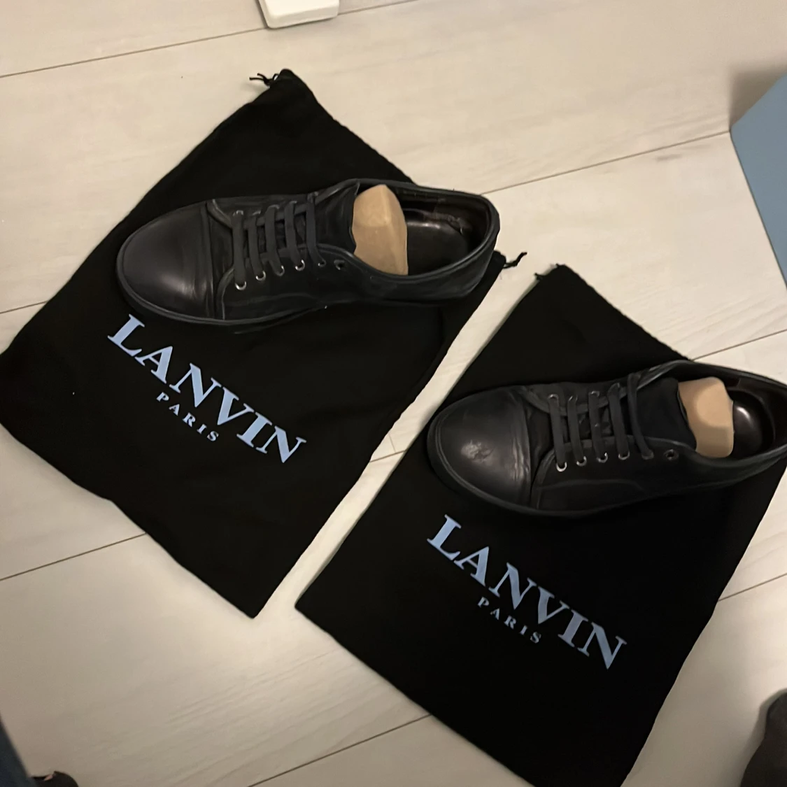 Snygga svarta sneakers från Lanvin med klassisk design. Skorna har snörning och en stilren look, perfekt för en modern stil. De kommer med originalförpackning och dustbags. Man får med extra snören i boxen. Dom har inga större skador