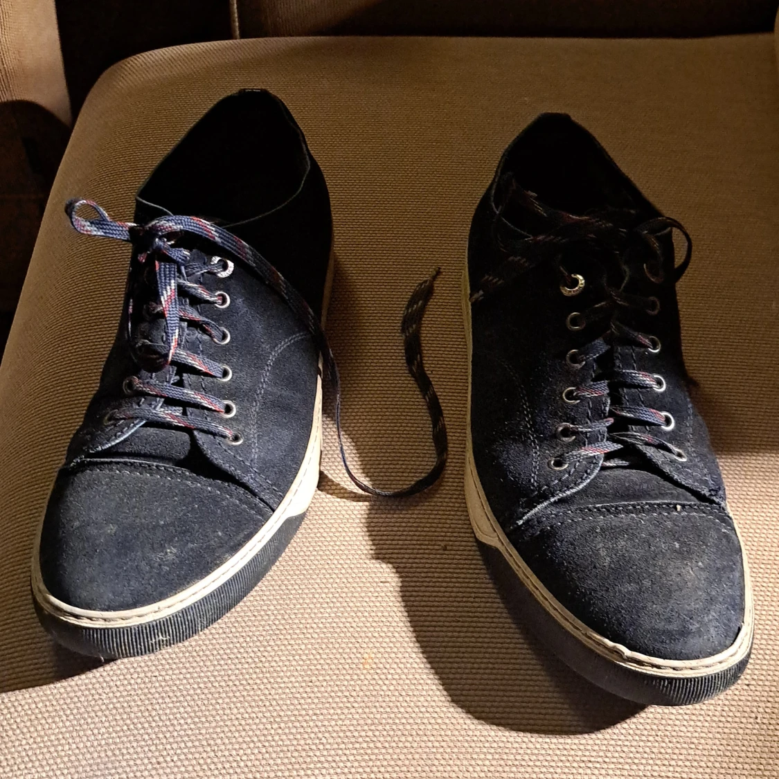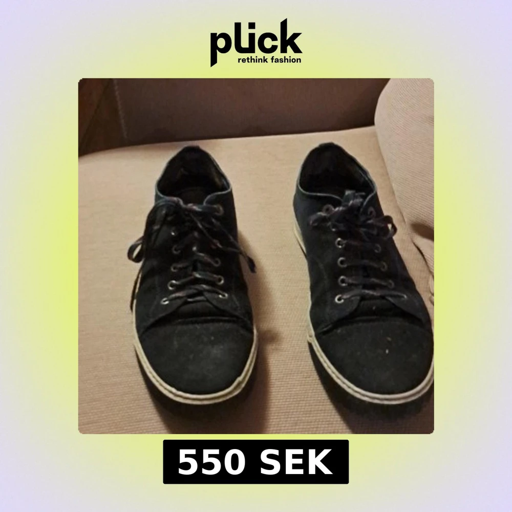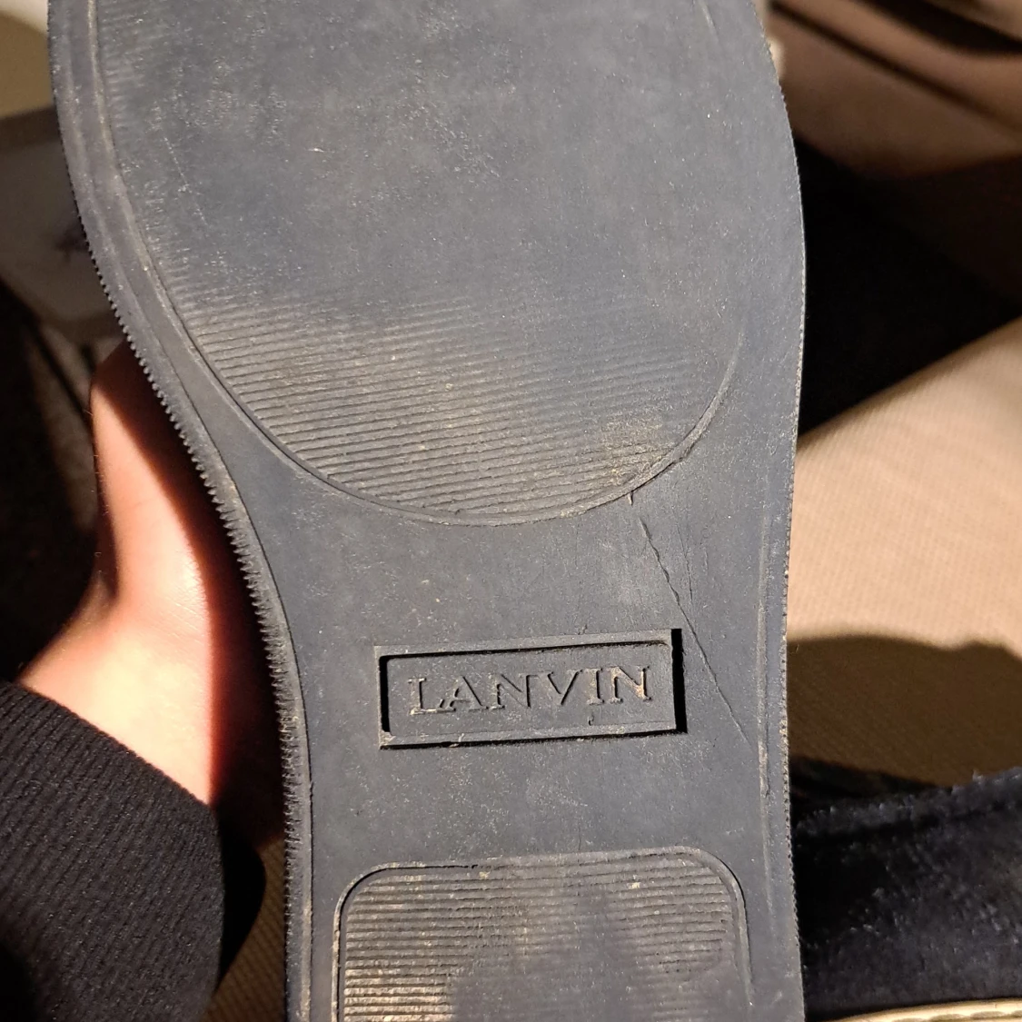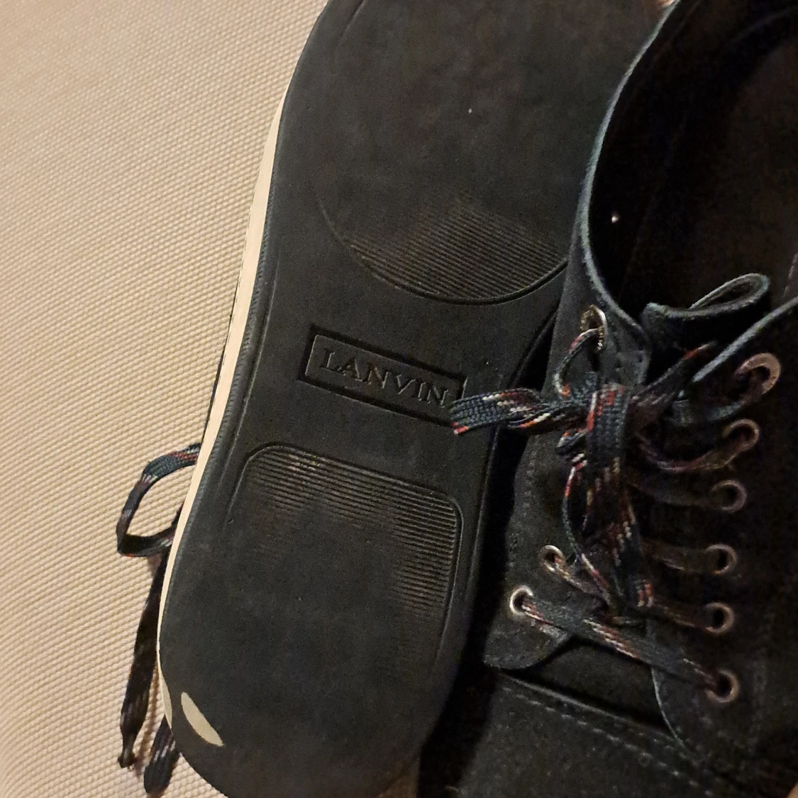 Snygga svarta sneakers från Lanvin med ovandel i mocka och klassisk vit sula. Skorna har rund tå, snörning med färgade skosnören och diskreta sömdetaljer. Perfekta för dig som gillar stilrena och exklusiva sneakers med en lyxig känsla.