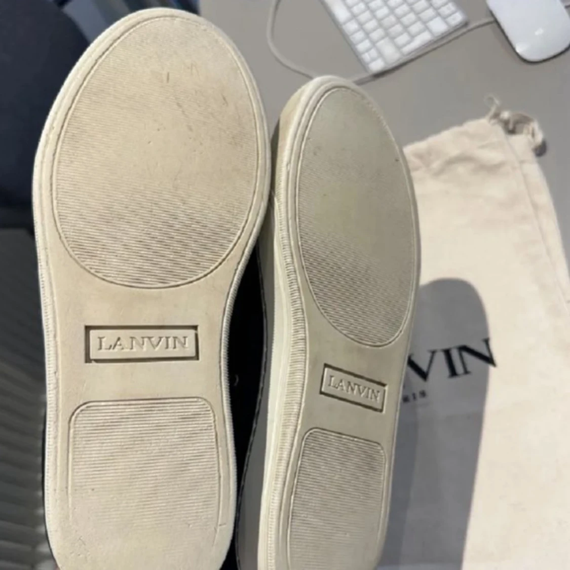 Svarta sneakers från Lanvin med vit platt sula och rund tå. Ovandelen är i mocka med detaljer i skinn på tån och snörning framtill. Klassisk och stilren modell som passar perfekt till jeans eller chinos. Kommer med original dustbag.
