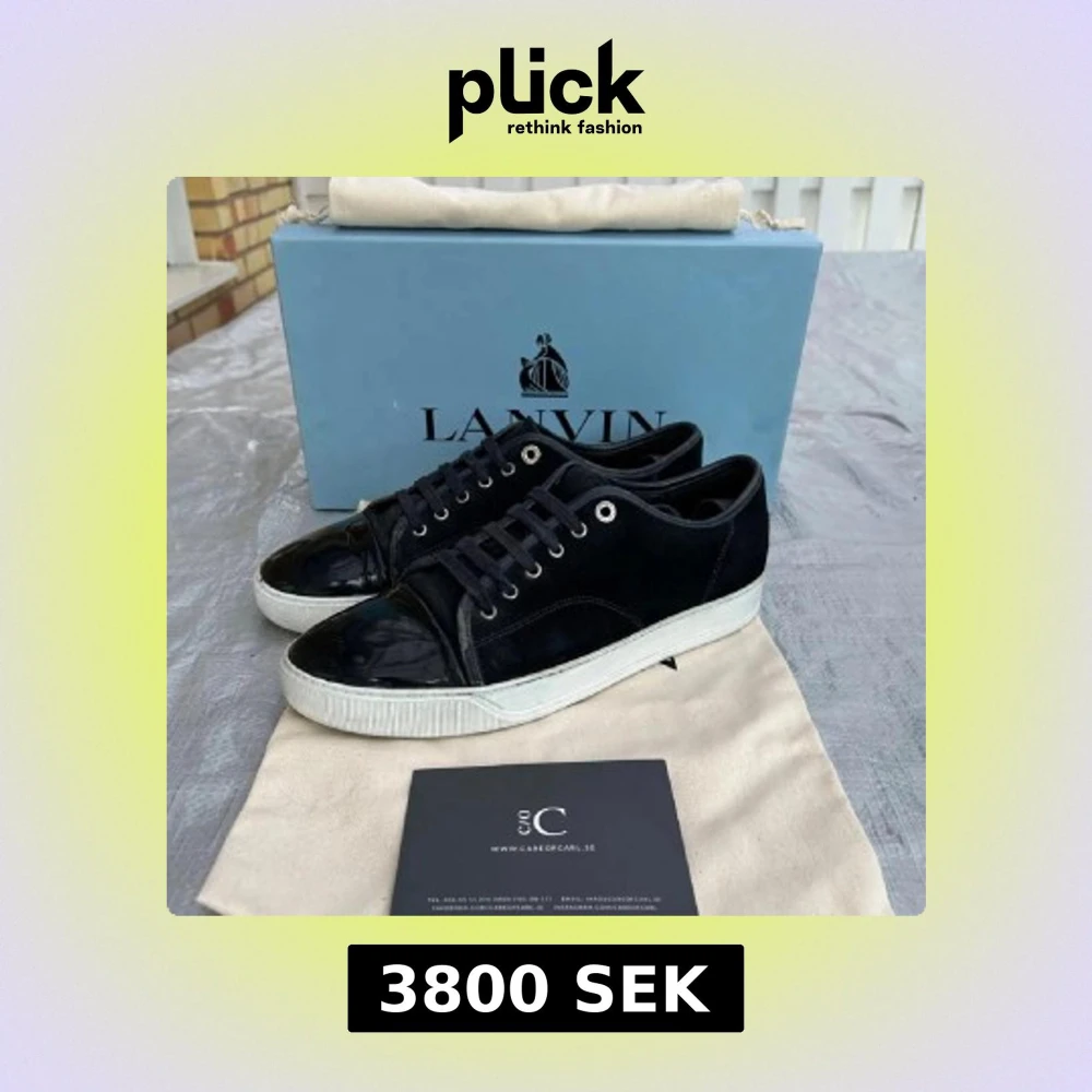Svarta sneakers från Lanvin med snygg kontrast mellan mocka och lackad tå. Skorna har rund tå, snörning och vit platt sula. Metallöglor och stilren design gör dem riktigt fräscha. Perfekta för dig som gillar exklusiva och trendiga sneakers.