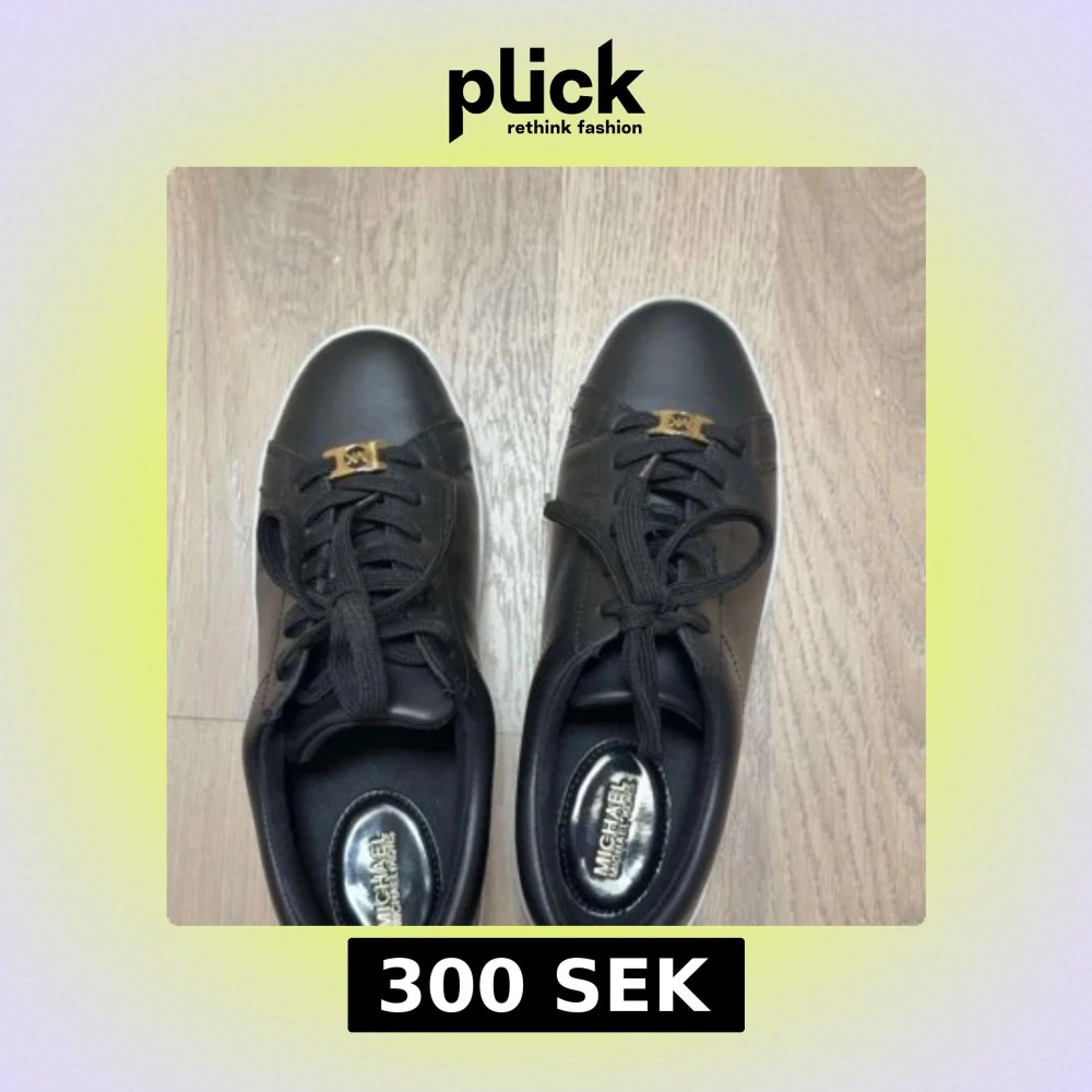 Skorna kom aldrig till användning!! Stilrena svarta sneakers från Michael Kors i skinn med vita sulor och svarta snören. Snygg gulddetalj med MK-logga framtill och diskret logga på sidan av sulan. Perfekta för dig som gillar en clean och klassisk look med en touch av lyx.