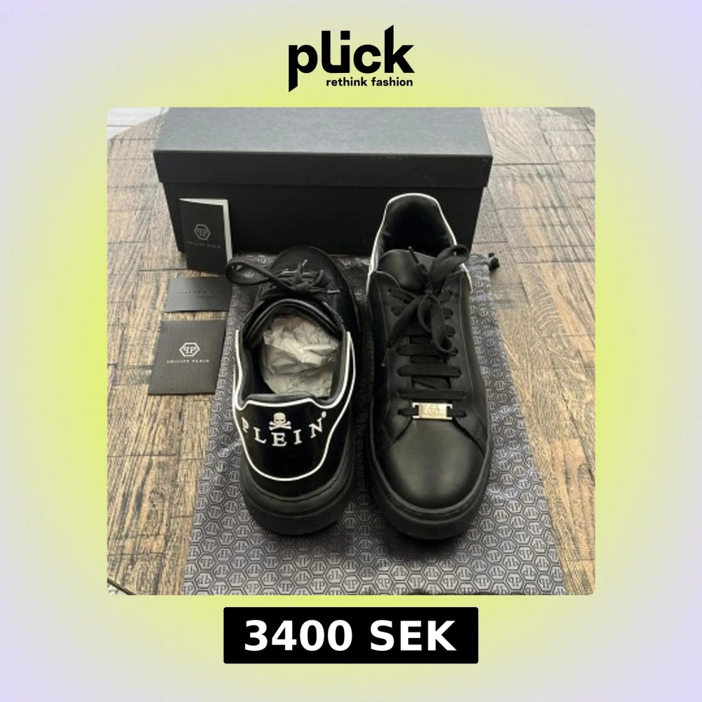 Snygga svarta sneakers från Philipp Plein med vit kant och logotypdetaljer. Skorna har snörning och en stilren design med en dödskalle på hälen. Perfekta för en trendig look. Ny pris 5730 kr - farfetch - Slutsålda